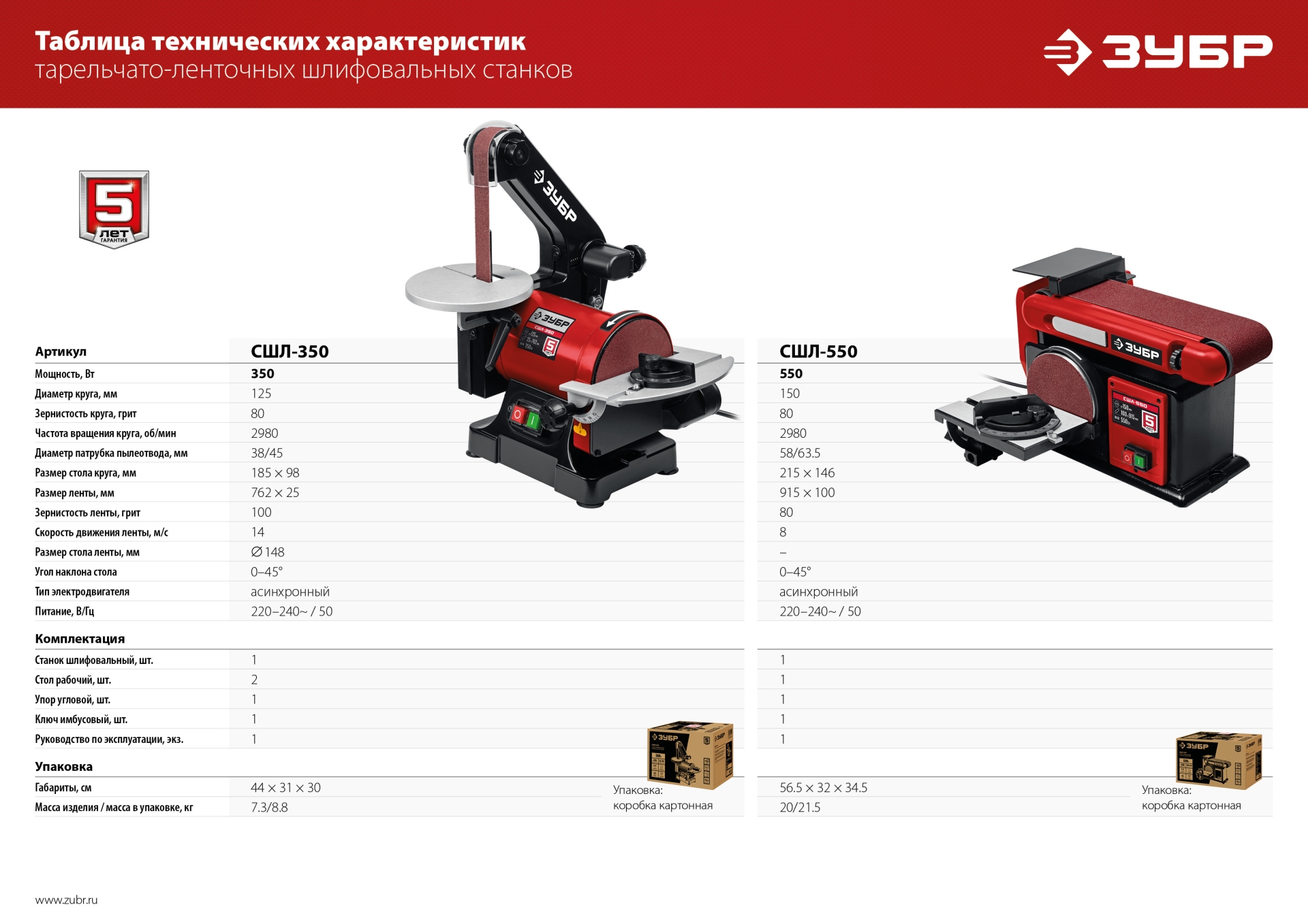 ЗУБР d 150 мм, 100 х 914 мм лента, 550 Вт, тарельчато - ленточный шлифовальный станок (СШЛ-550)