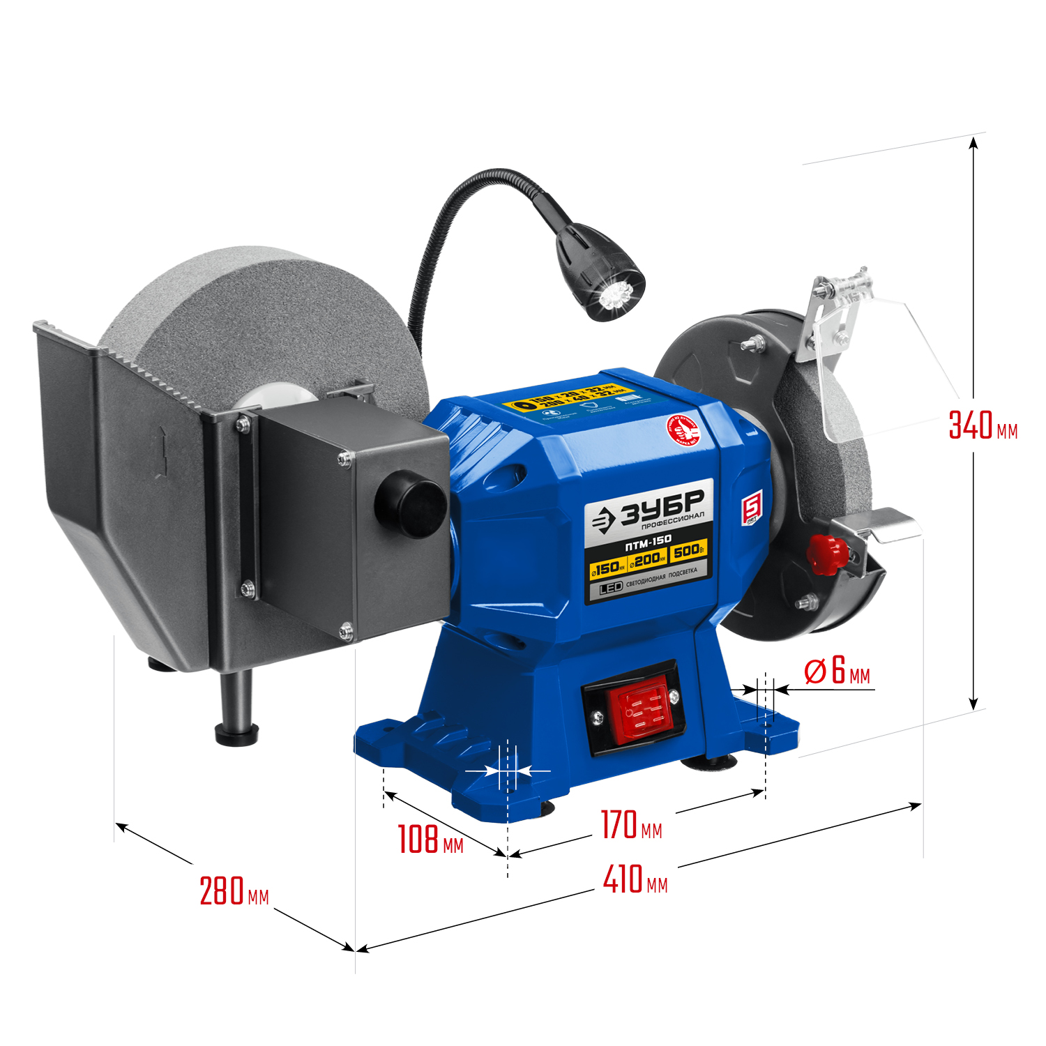 Станок заточной ЗУБР ПТМ-150 – незаменимый инструмент для гаража, мастерской, используемый для заточки режущего инструмента и сухого/мокрого шлифования металлических заготовок. Простота конструкции, высокая надежность, компактный размер, два камня с разной зернистостью, возможность мокрого шлифования – все что нужно для настоящего мастера, ценящего качество и рассчитывающего на долгий срок службы.