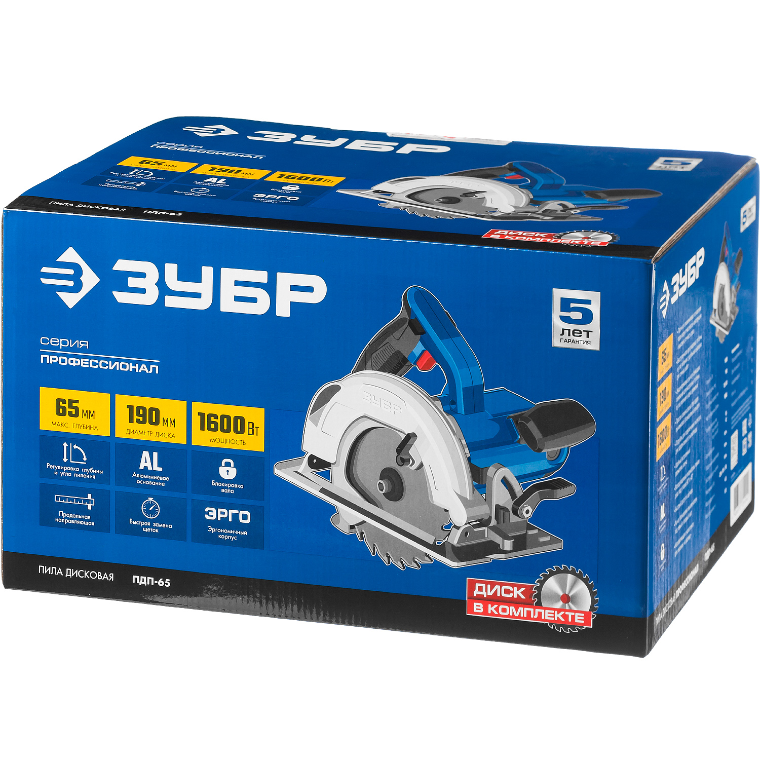 ЗУБР d 190 мм, 1600 Вт, циркулярная пила (дисковая), Профессионал (ПДП-65)