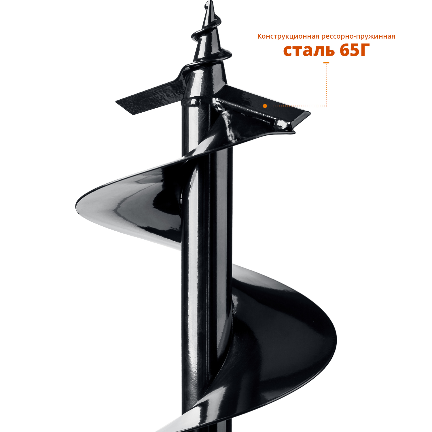 Шнек является сменным элементом для мотобуров ЗУБР. Он представляет собой винтообразный бур, который широко применяют для бурения скважин бытового назначения. Например, с его помощью можно бурить скважины для установки столбов. Благодаря винтовой форме шнек быстро проникает сквозь грунт и выбрасывает его наверх.