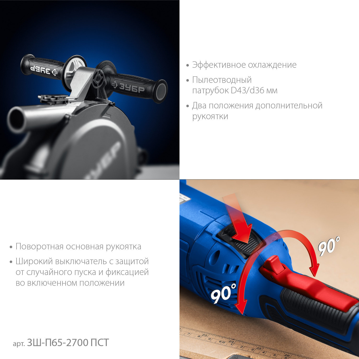 - Поворотная основная рукоятка для лучшего контроля во время работы