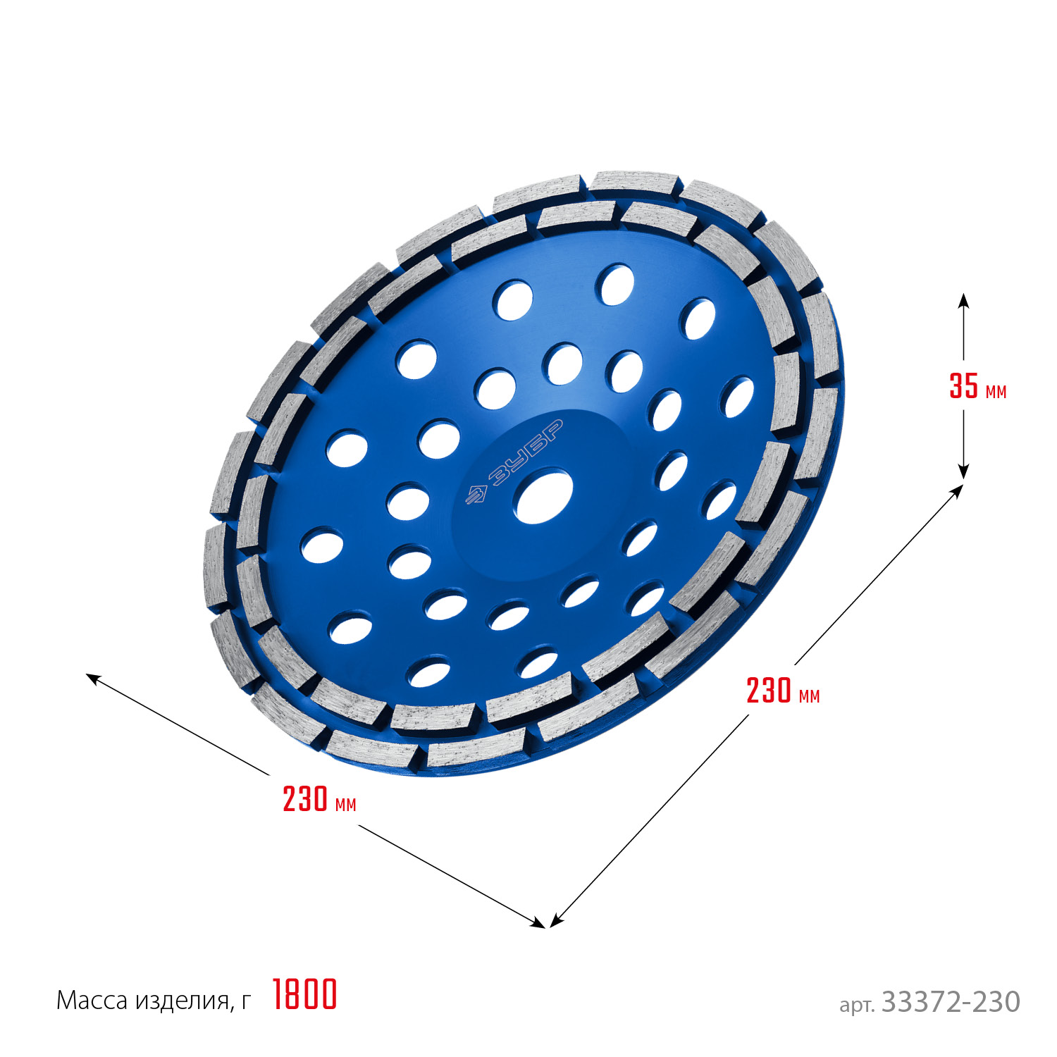 - Два ряда алмазных сегментов для равномерного шлифования и большого объема работ.