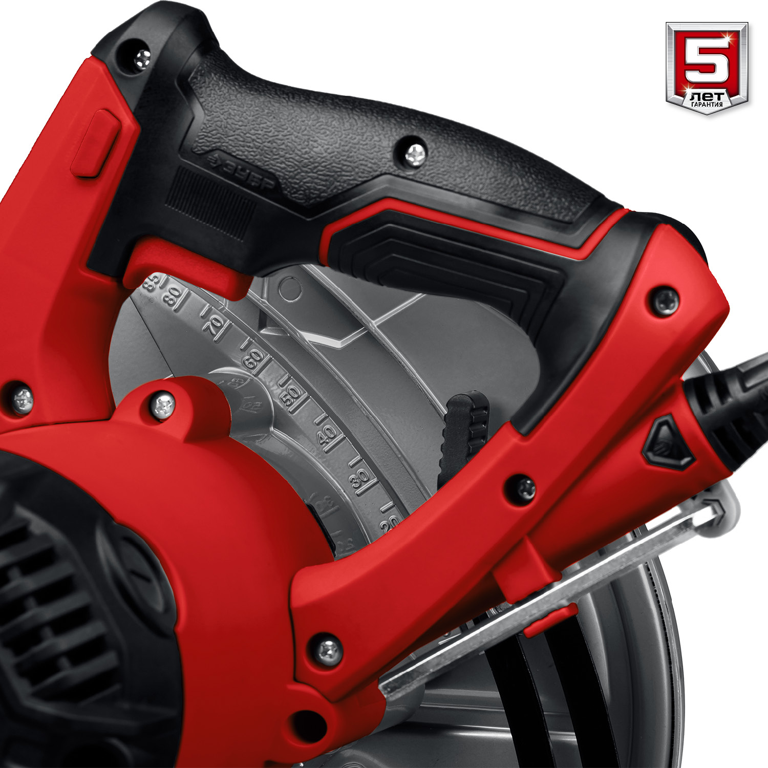 - Бесступенчатая регулировка глубины и угла пиления для точных работ