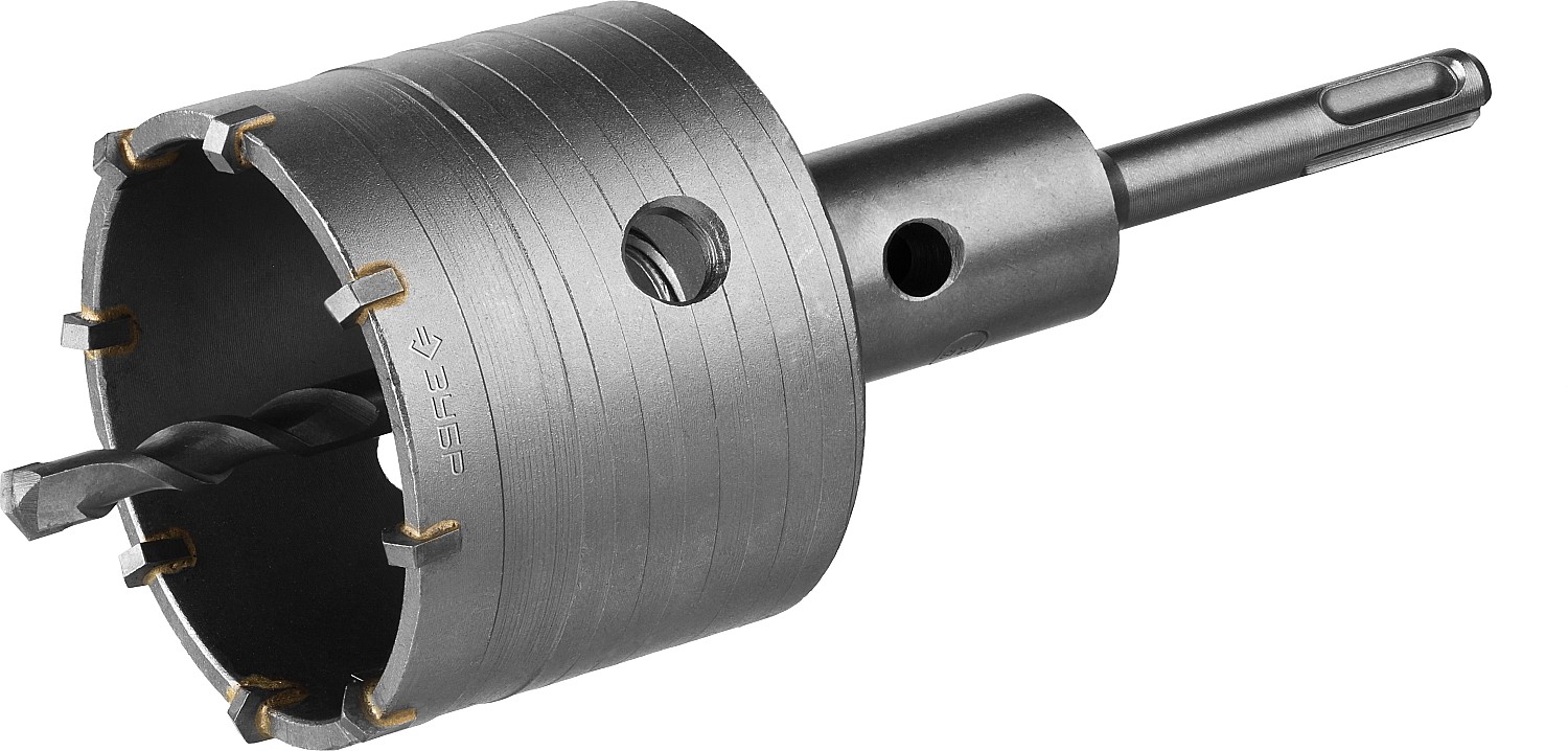 Предназначен для сверления отверстий в бетоне, кирпиче, природном и искусственном камне, а также плотных известняках. Используется с дрелями и перфораторами мощностью не менее 850 Вт в режиме ударного сверления.