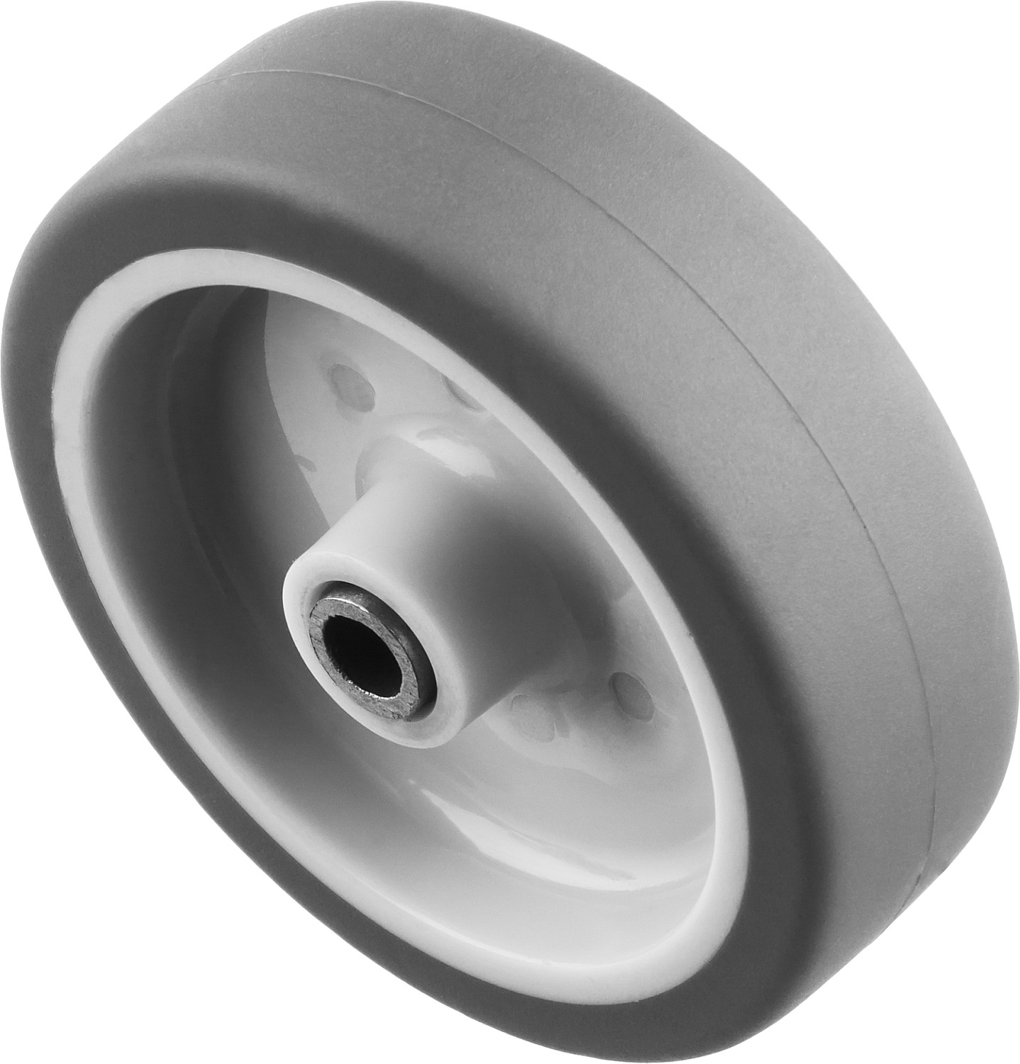 - Термопластичная резина (твердость 85±5 Shore A) при скольжении не оставляет следов на полу. Это позволяет использовать данные колеса на деликатных покрытиях (паркет, ламинат, плитка и т.п.).
