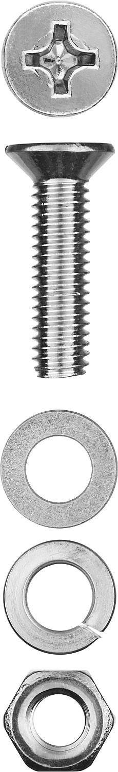 - Винты имеют полусферическую головку, что позволяет использовать шайбу для усиления давления на опорную поверхность.