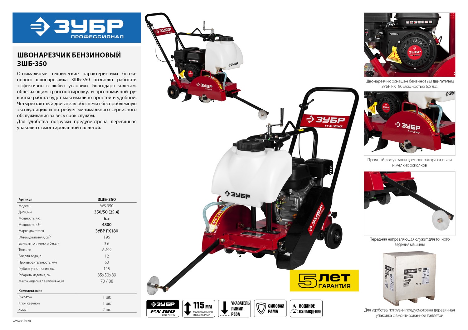 Новая линейка строительной техники для профессионалов. Оптимальные технические характеристики позволяют работать еще эффективнее и в любых условиях, а благодаря колесам, облегчающим транспортировку, и эргономичной рукоятке ежедневная работа со швонарезчиком будет простой и удобной. Четырехтактный двигатель ″ЗУБР″ обеспечит беспроблемную эксплуатацию и потребует минимального сервисного обслуживания за весь срок использования.