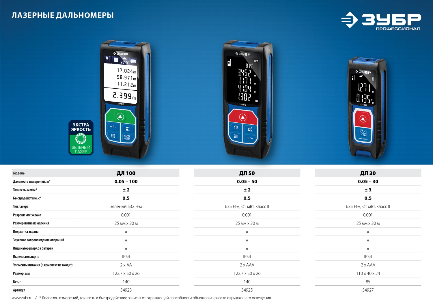 Диапазон измерений: 0.03 – 30 м