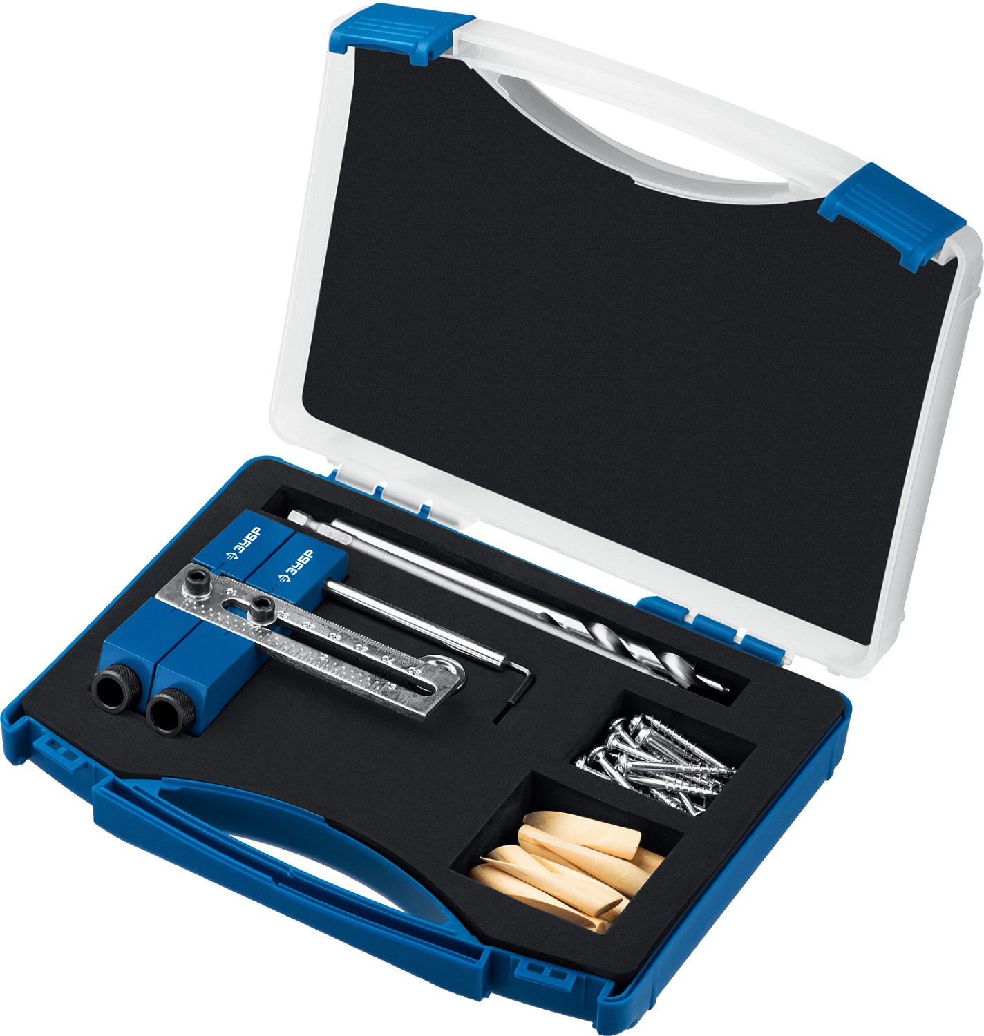 Использование кондукторов значительно упрощает процесс соединения деревянных деталей. Кондуктор предназначен для сверления глухих отверстий и точно позиционирует ступенчатое сверло. Глухое отверстие имеет внутри специальный профиль - больший диаметр на входе, ступенька, меньший диаметр на выходе. Ступенька в глубине глухого отверстия служит опорной поверхностью для головки самореза, обеспечивая прочное соединение деталей. Достаточно просверлить отверстия только в одной из соединяемых деталей и стянуть детали специальными саморезами для глухих отверстий. При выборе самореза нужно учитывать толщину соединяемых деталей.