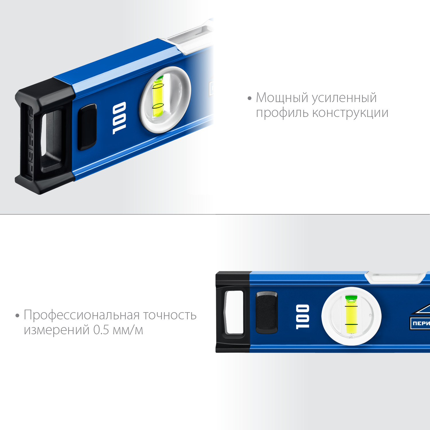 Мощный уровень с удобными рукоятками и фрезерованной базовой поверхностью