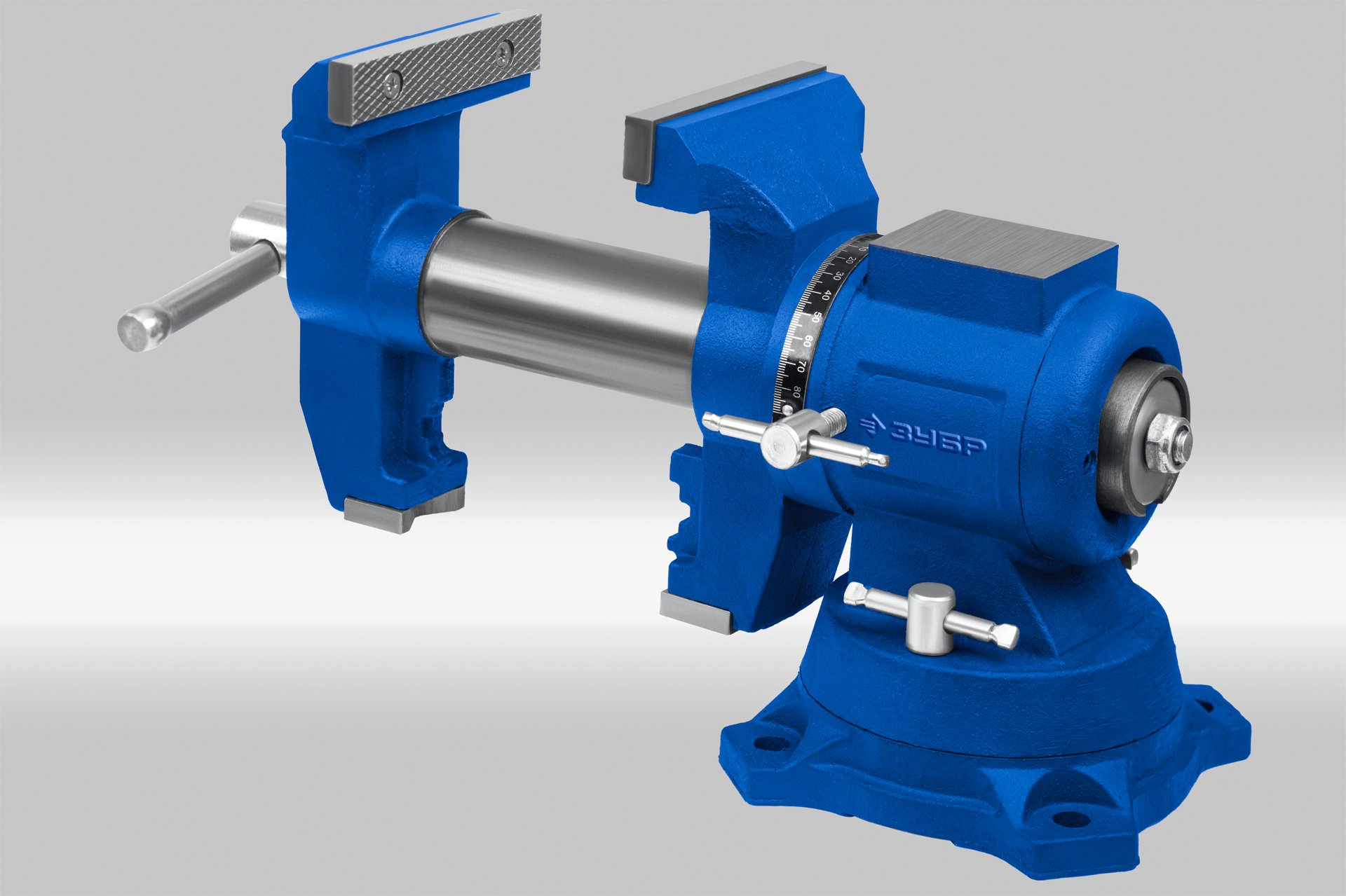 - Поворотное основание позволяет перемещать корпус тисков в горизонтальной плоскости на угол от 0 до 360 градусов