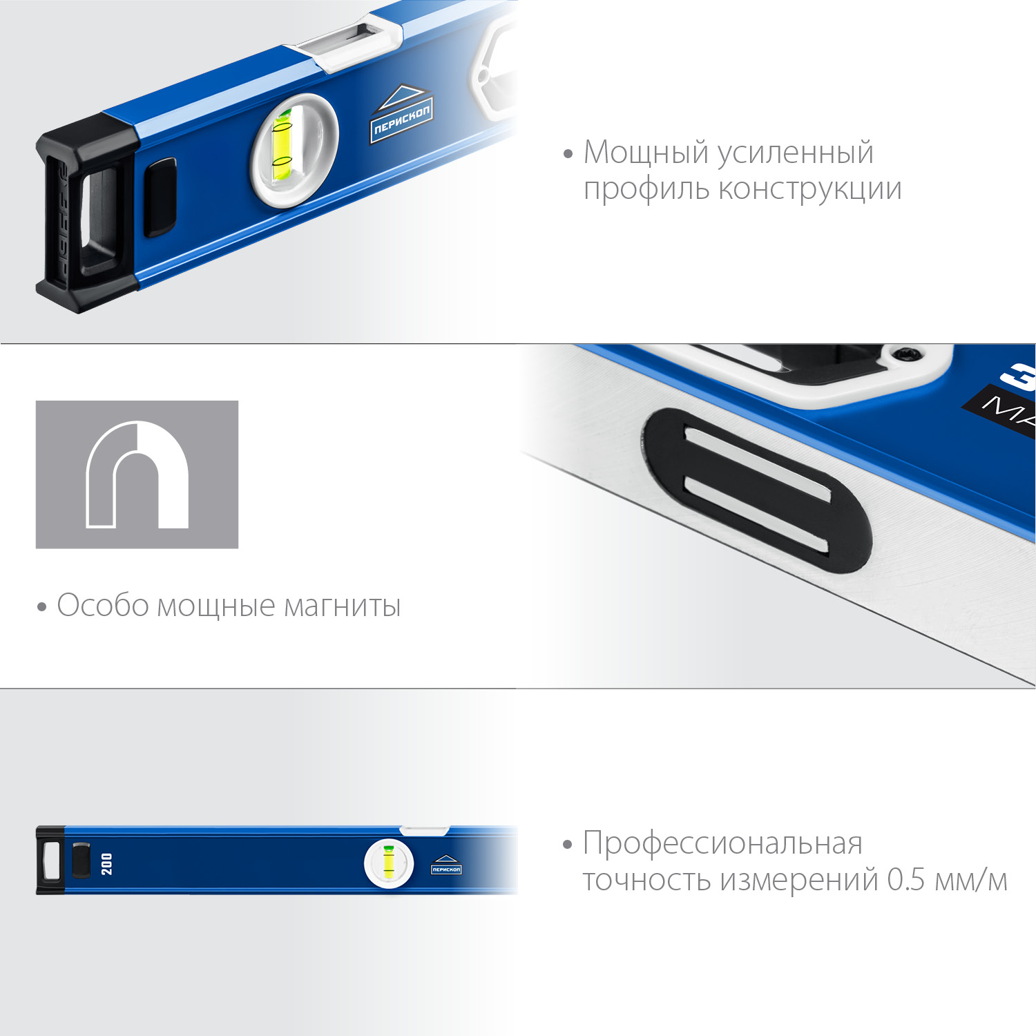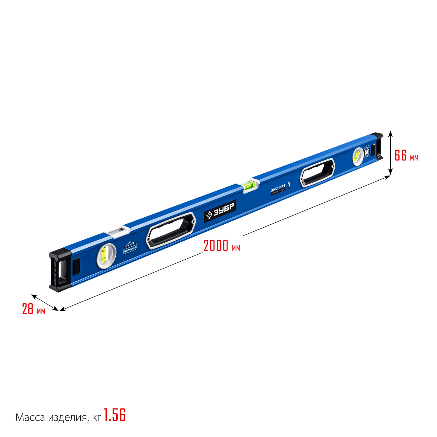 Магнитный мощный уровень с удобными рукоятками и фрезерованной базовой поверхностью