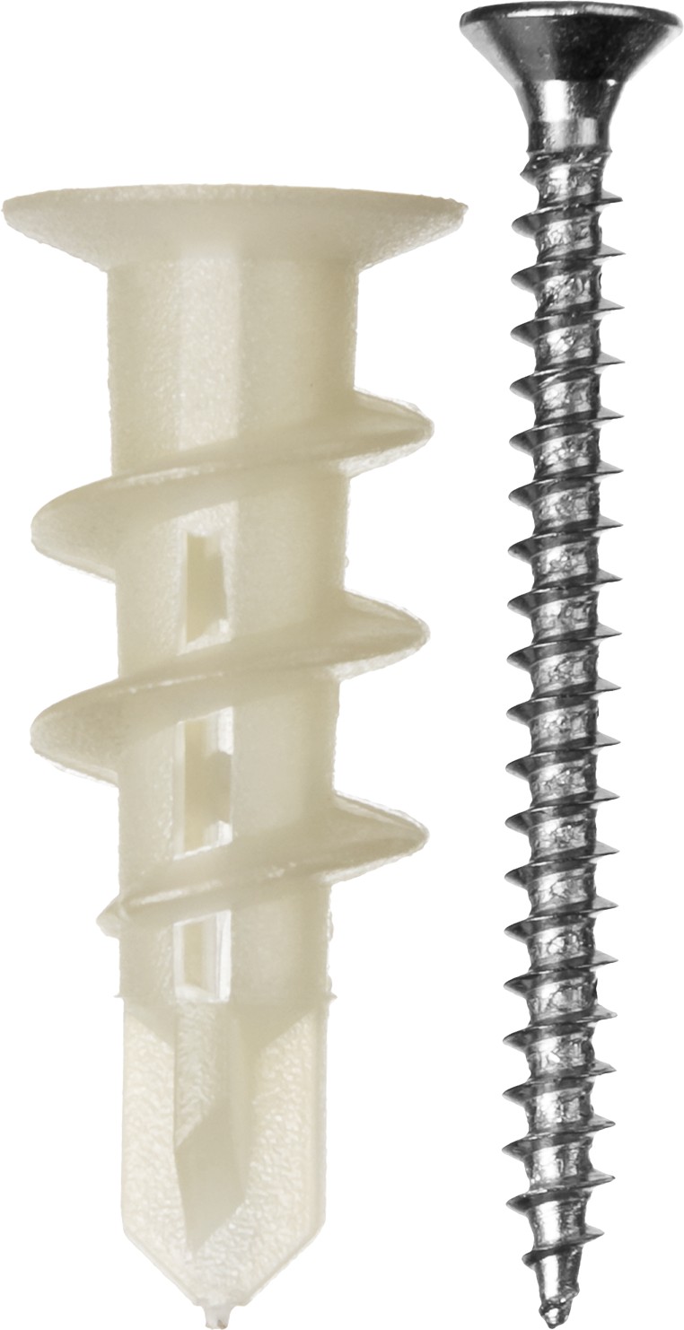 Для монтажа элементов и конструкций к полнотелым строительным материалам (бетон, кирпич, природный камень). Фиксация дюбеля происходит при вкручивании в него самореза (в комплект не входит). Диаметр предварительного сверления: 12 мм.