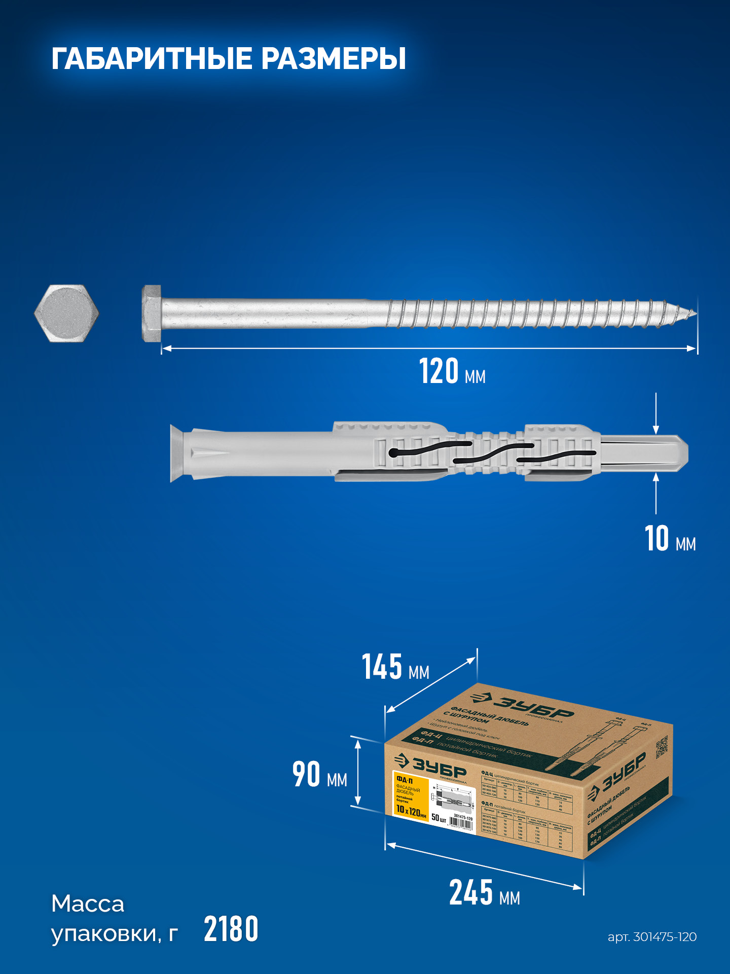Для крепления фасадных и кровельных конструкций, окон и дверных блоков, ограждений и т.п. к полнотелым строительным материалам. Установка производится в предварительно просверленное и очищенное от буровой муки отверстие диаметром 10 мм.