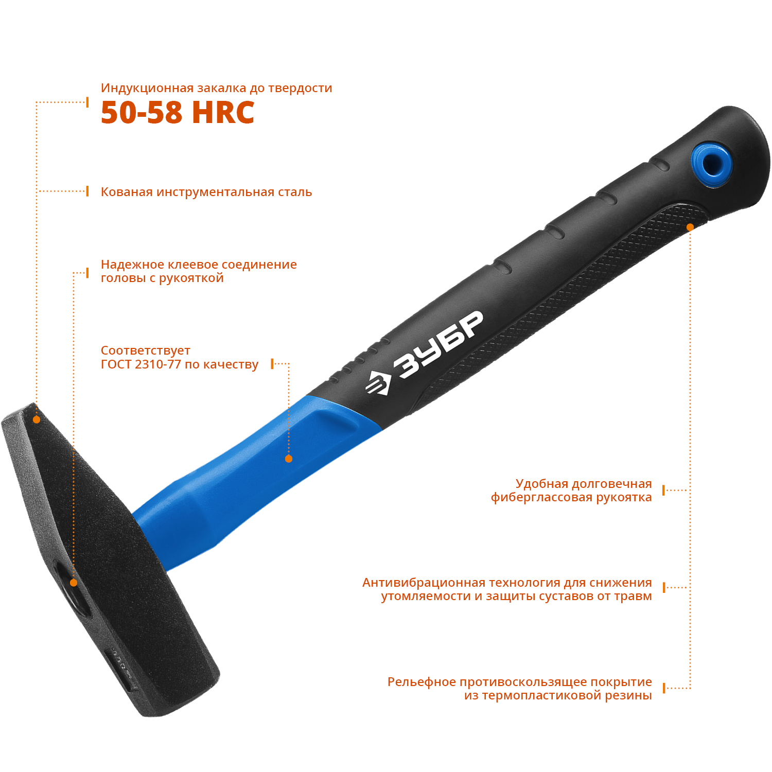 Молоток ЗУБР ПРОФЕССИОНАЛ оснащен особопрочной фибергласовой рукояткой. АВТ - технология позволяет существенно снизить вибрации, возникающие во время удара, что делает работу с инструментом более комфортной. Соответствует требованиям ГОСТ 2310-77.