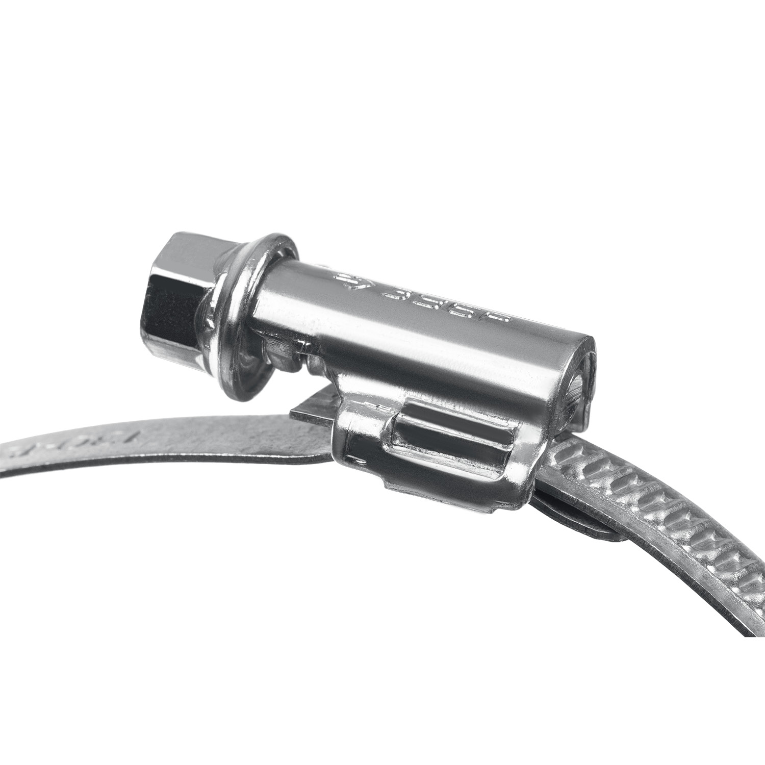 Червячный хомут состоит из штампованной ленты и винта с червячной резьбой. Накатная лента имеет гладкую внутреннюю поверхность, которая защищает шланг от повреждений. При вращении винта лента сжимается, благодаря чему создается надежное и герметичное соединение шлангов, различных труб, и т.д. Червячный винт снабжен шестигранной головкой под ключ 8 мм и шлицем PH, что позволяет использовать при монтаже гаечный ключ или шлицевую отвертку.