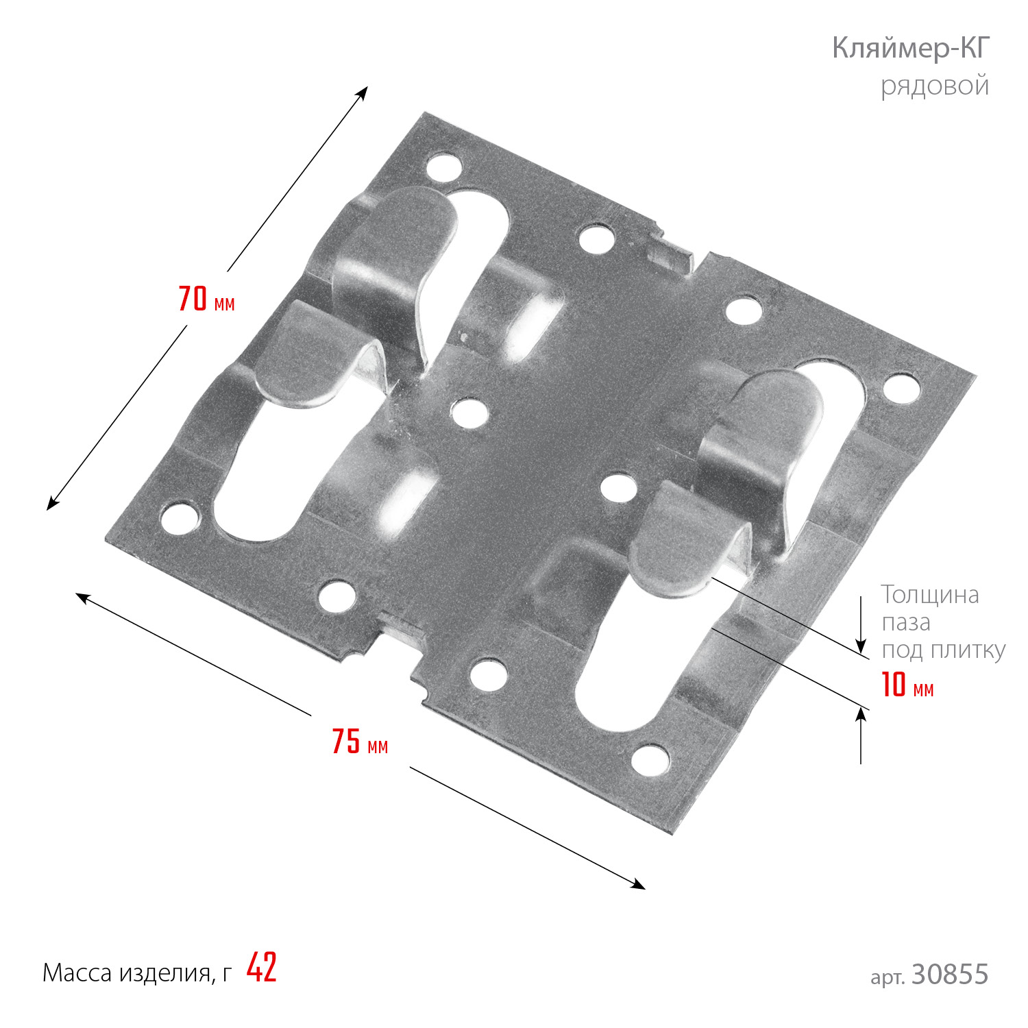 Рядовой крепеж применяется для монтажа второго и последующих рядов керамогранита при устройстве вентилируемых фасадов