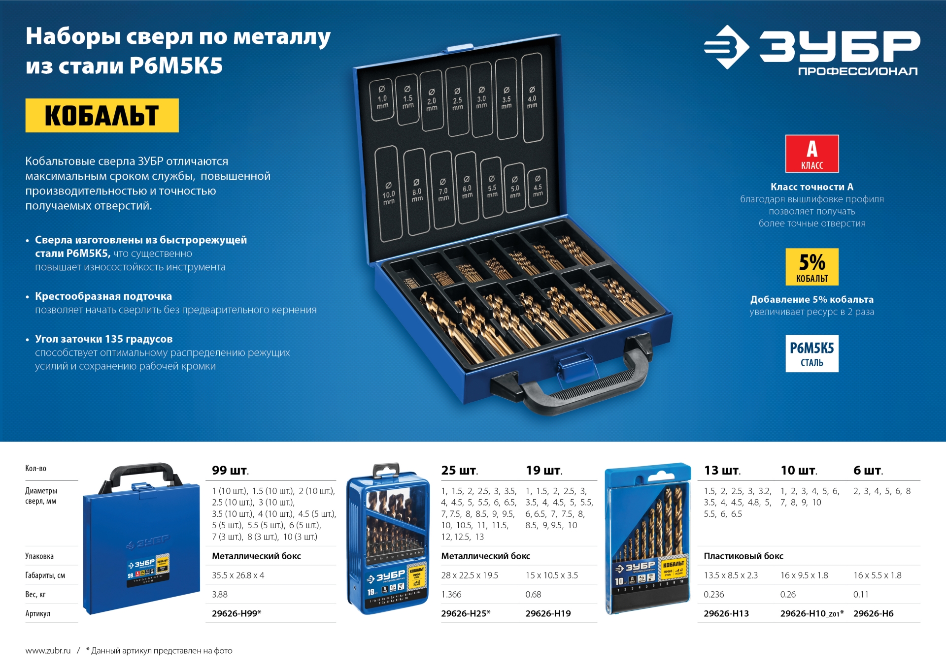 Количество сверл в наборе, шт: 6
