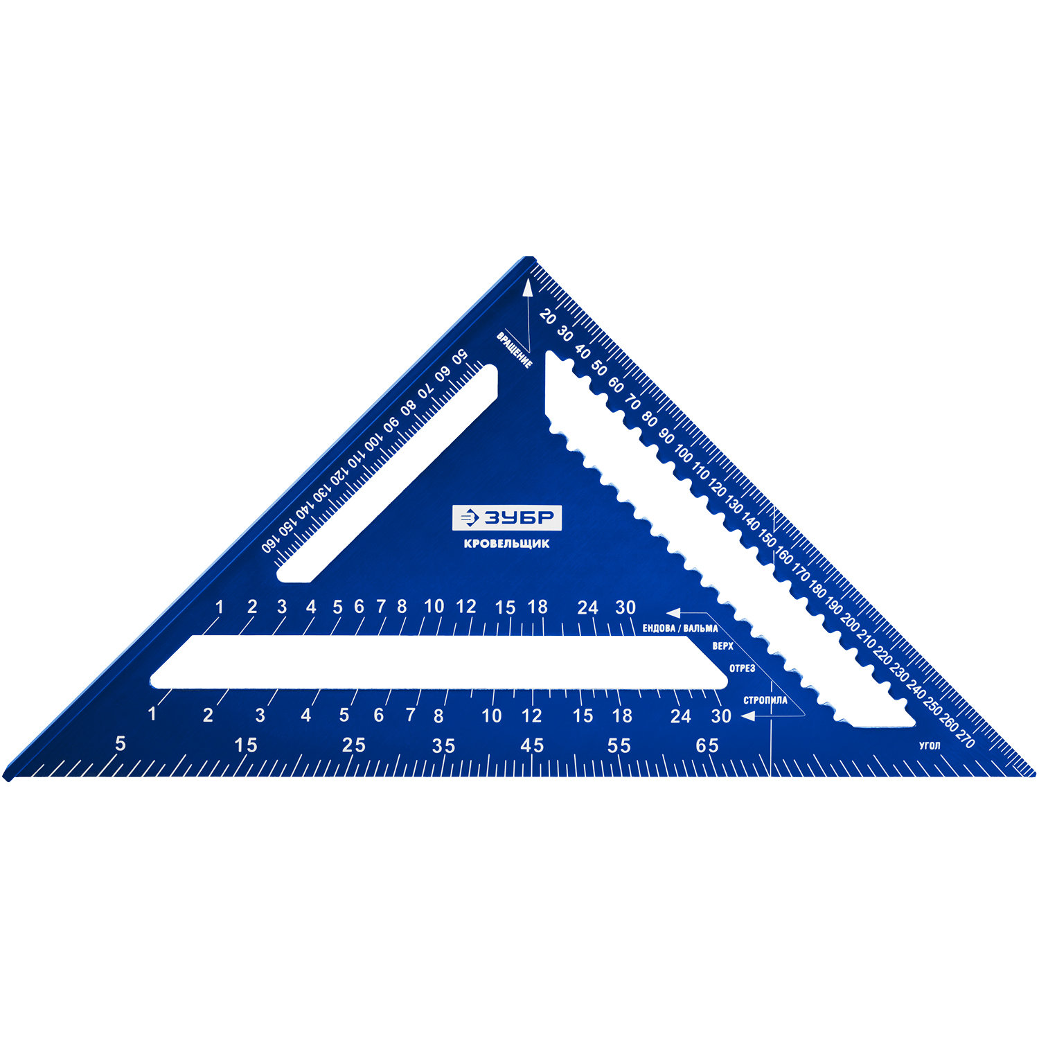 Универсальный большой кровельный угольник инструмент для точного определения расстояния в диапазоне от 0 до 300 мм. Может применяться в качестве торцовочного угольника, транспортира, рейсмуса и направляющей для пилы.