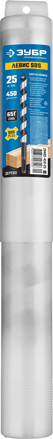 Используется при сверлении в безударном режиме отверстий в древесине, фанере, ДСП, клеёных щитах и пластике на электроперфораторах с системой крепления SDS-plus.