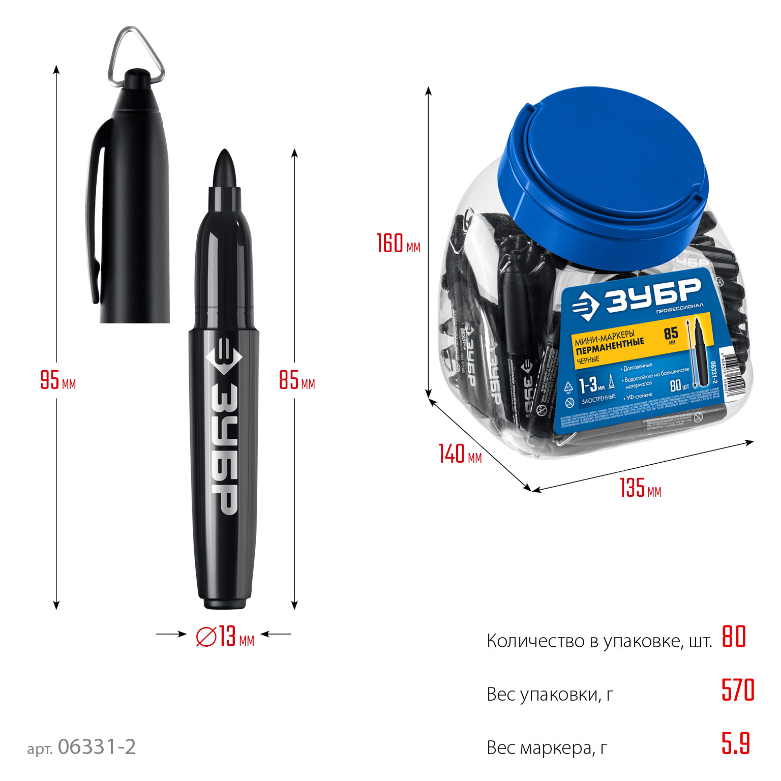 ЗУБР Мини черный, 1-3 мм, 80 шт, перманентный маркер (06331-2)