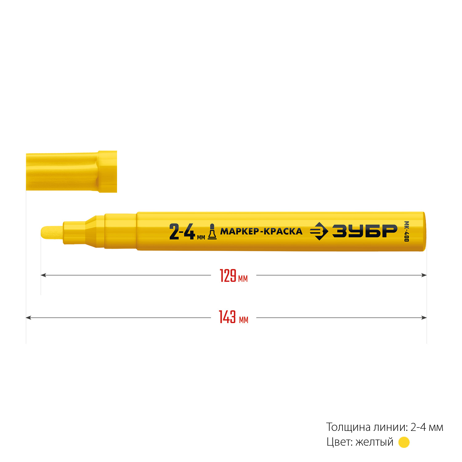 ЗУБР МК-400 желтый, 2-4 мм маркер-краска (06325-5)