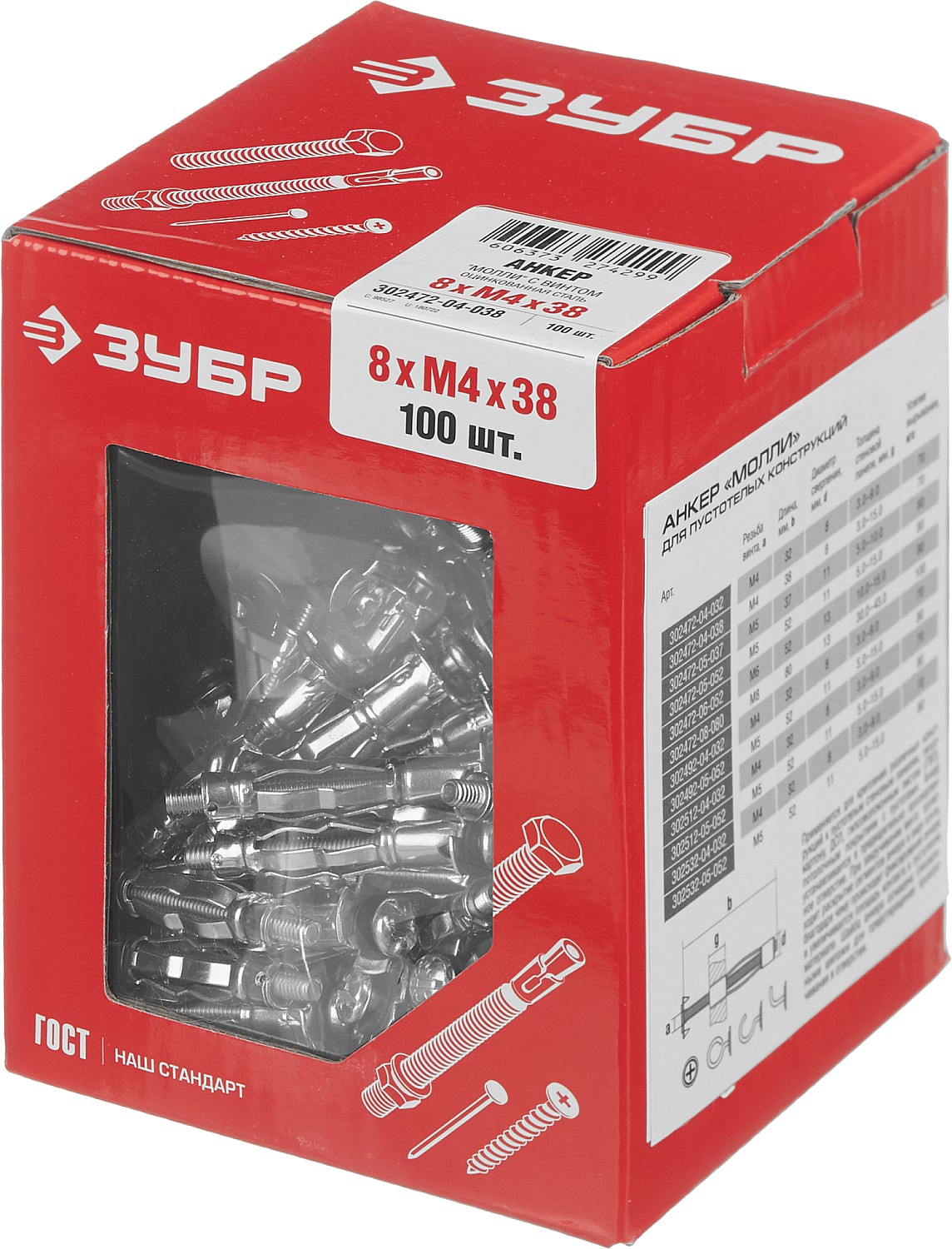 Для крепления различных конструкций к пустотелым стеновым панелям, гипсокартону, ДСП, гипсоволоконным листам (ГВЛ), потолочным покрытиям с пустотами. Установка анкера производится при помощи заклепочника для анкеров. Винт анкера имеет шлиц PH&SL.