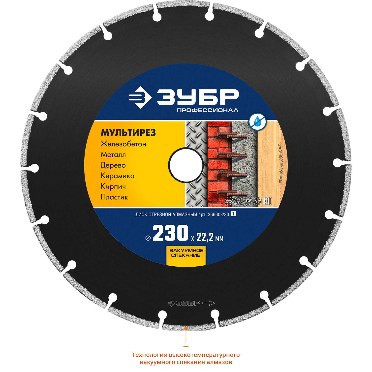 Исключительно высокий уровень качества отрезных алмазных дисков ЗУБР гарантирован комплексной системой контроля всего процесса производства: от качества поступающего сырья до готовой продукции. Корпуса алмазных дисков изготовлены из прочной легированной стали, способной выдержать значительную механическую нагрузку и высокую температуру.