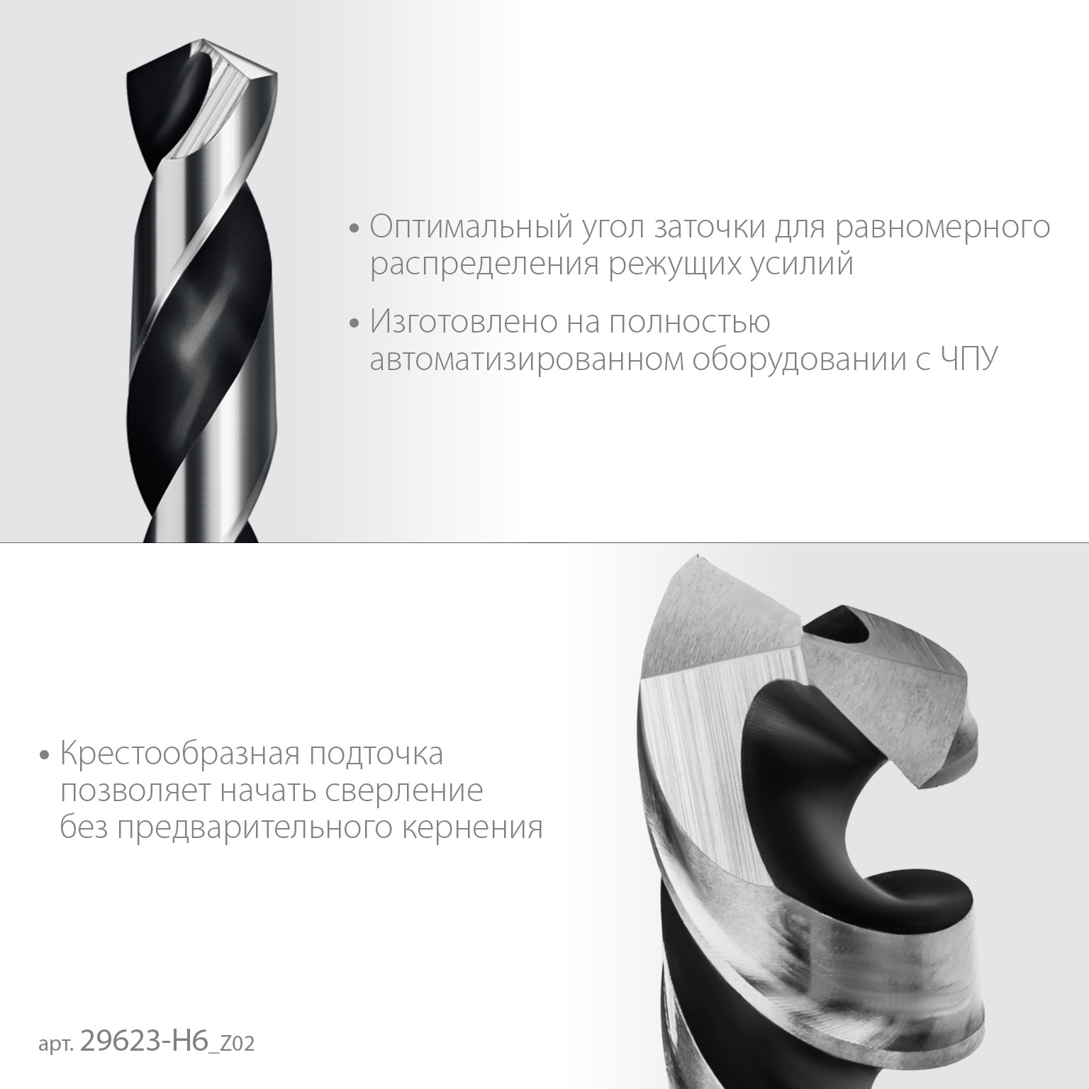 - Крестообразная подточка позволяет начать сверлить без предварительного кернения