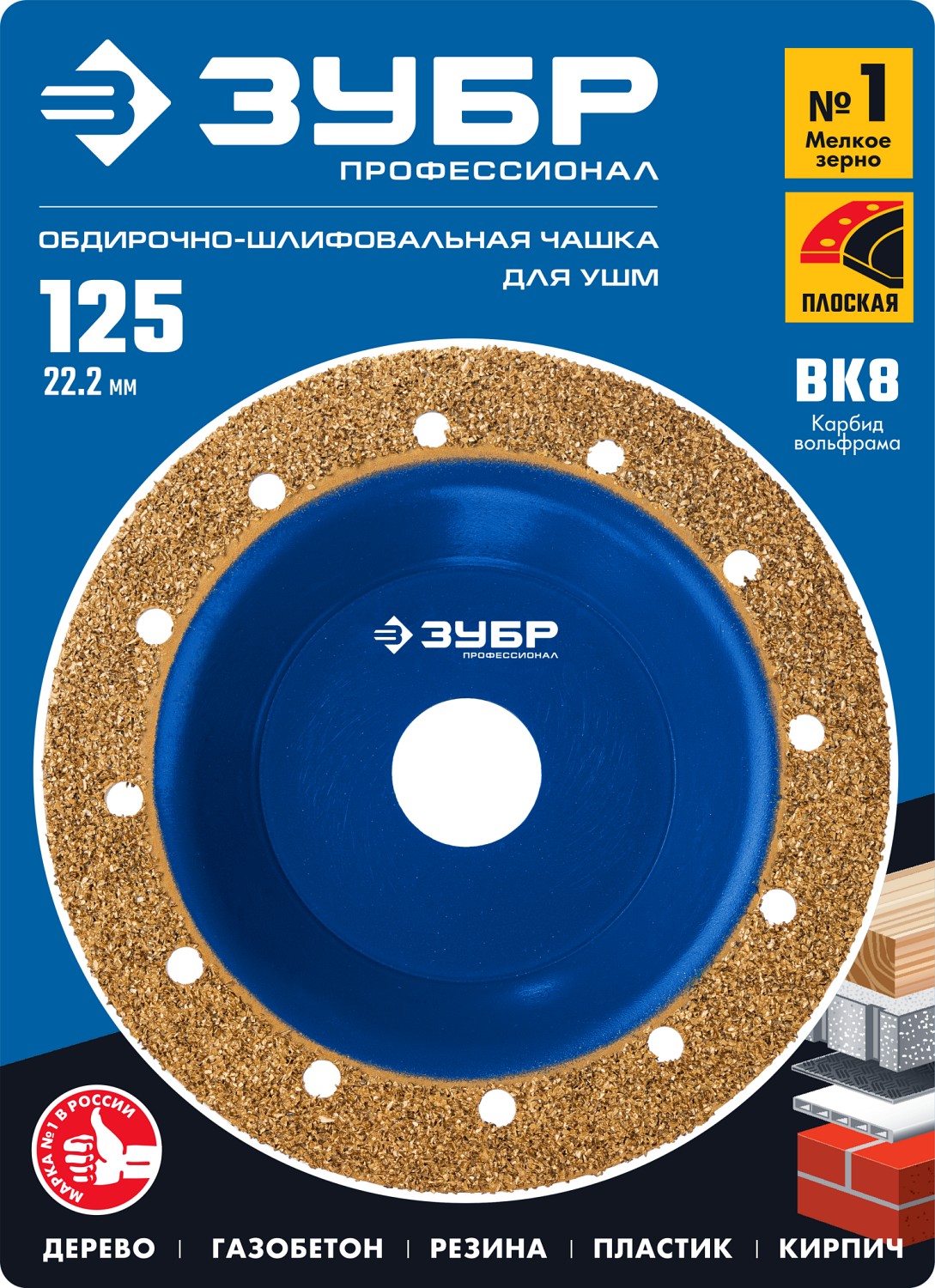 ЗУБР №1 мелкое зерно, 125 мм, ВК8, плоская обдирочно-шлифовальная чашка, Профессионал (33430-1)