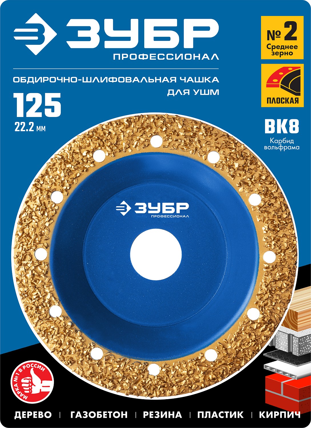 Обдирочно-шлифовальные чашки ЗУБР Профессионал изготовлены из износостойкого зерна твердосплава ВК8 скрепленного сверхпрочной пайкой с корпусом чашки благодаря чему обладают уникальным сверхвысоким ресурсом.