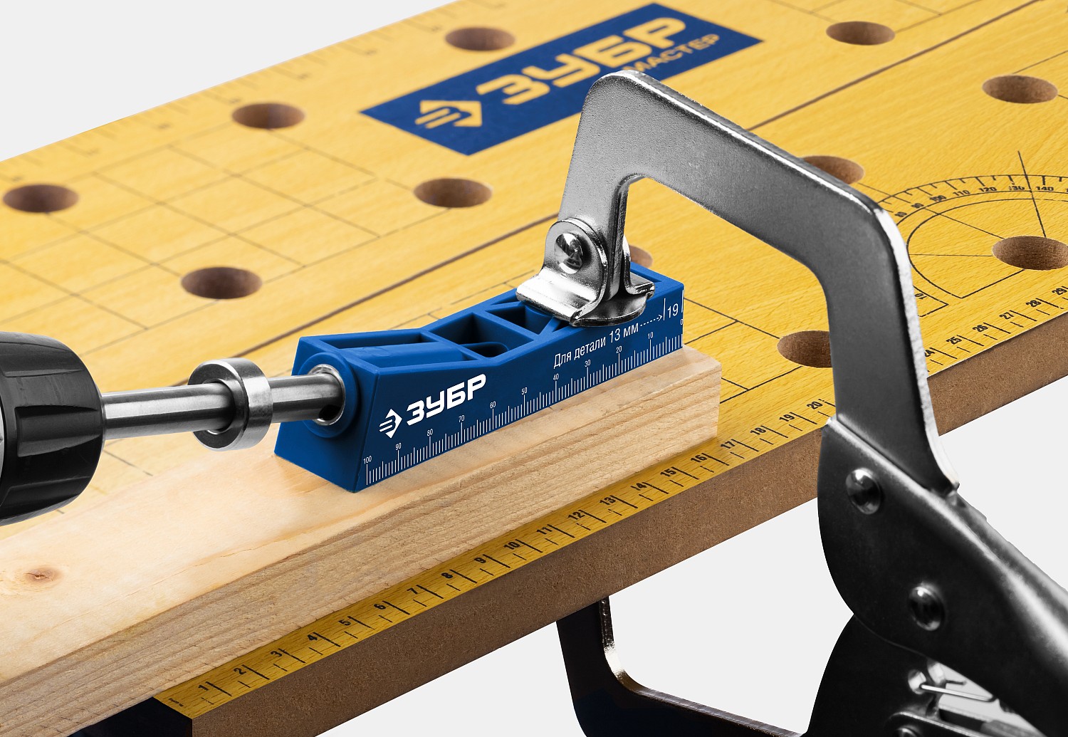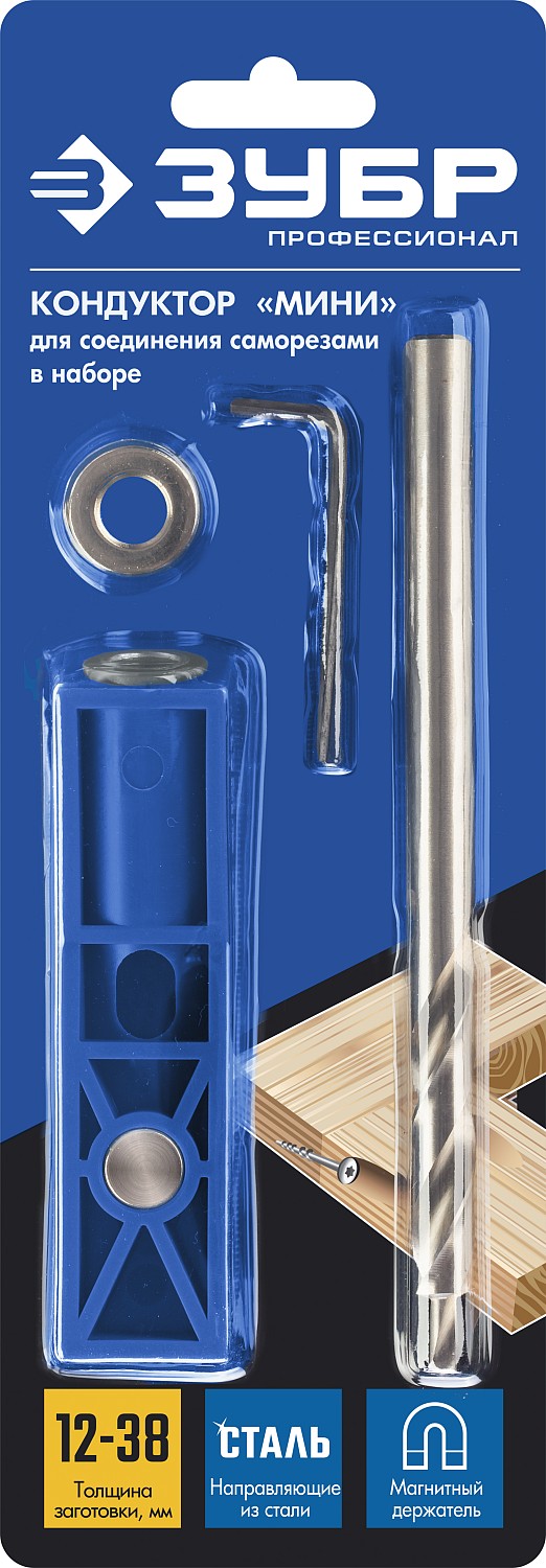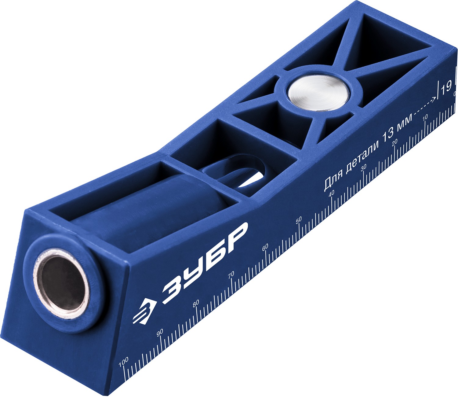 Использование кондукторов значительно упрощает процесс соединения деревянных деталей. Кондуктор предназначен для сверления глухих отверстий и точно позиционирует ступенчатое сверло. Глухое отверстие имеет внутри специальный профиль - больший диаметр на входе, ступенька, меньший диаметр на выходе. Ступенька в глубине глухого отверстия служит опорной поверхностью для головки самореза, обеспечивая прочное соединение деталей. Достаточно просверлить отверстия только в одной из соединяемых деталей и стянуть детали специальными саморезами для глухих отверстий. При выборе самореза нужно учитывать толщину соединяемых деталей.