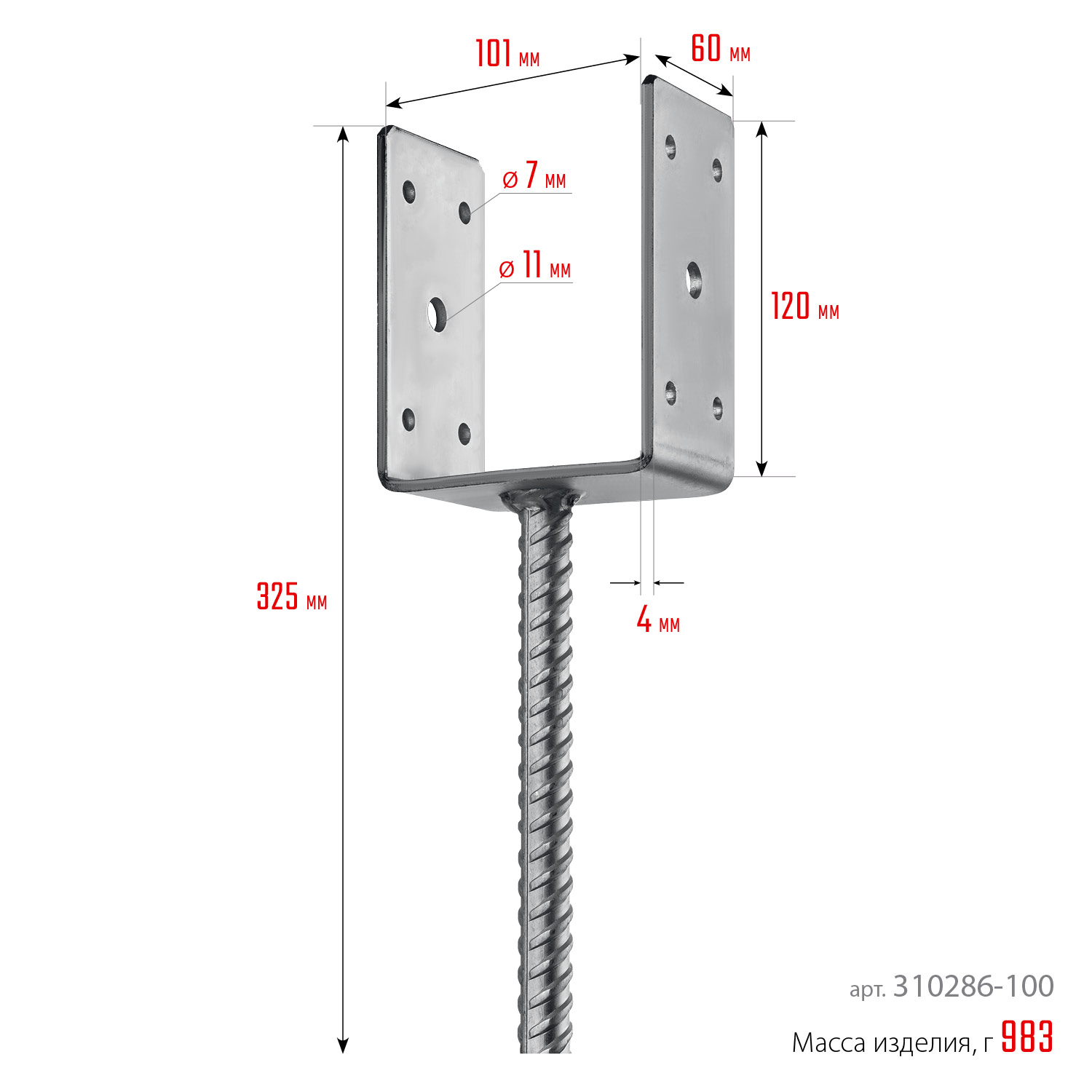 ЗУБР ОС-U, 101 x 120 x 60 мм, U-образное основание столба (310286-100)