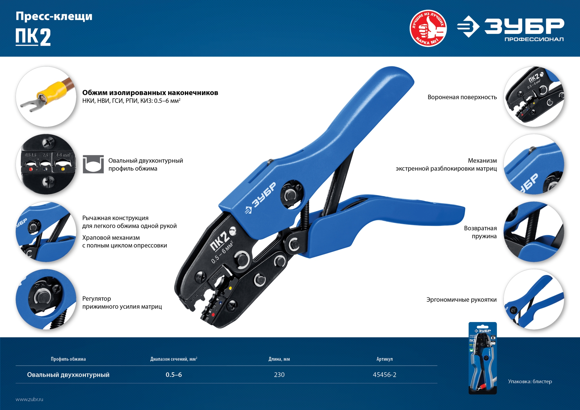 Пресс-клещи ЗУБР изготовлены из высококачественной стали, предназначены для профессионального применения. Обладают повышенным ресурсом, обеспечивает наивысшее качество электромонтажных работ.