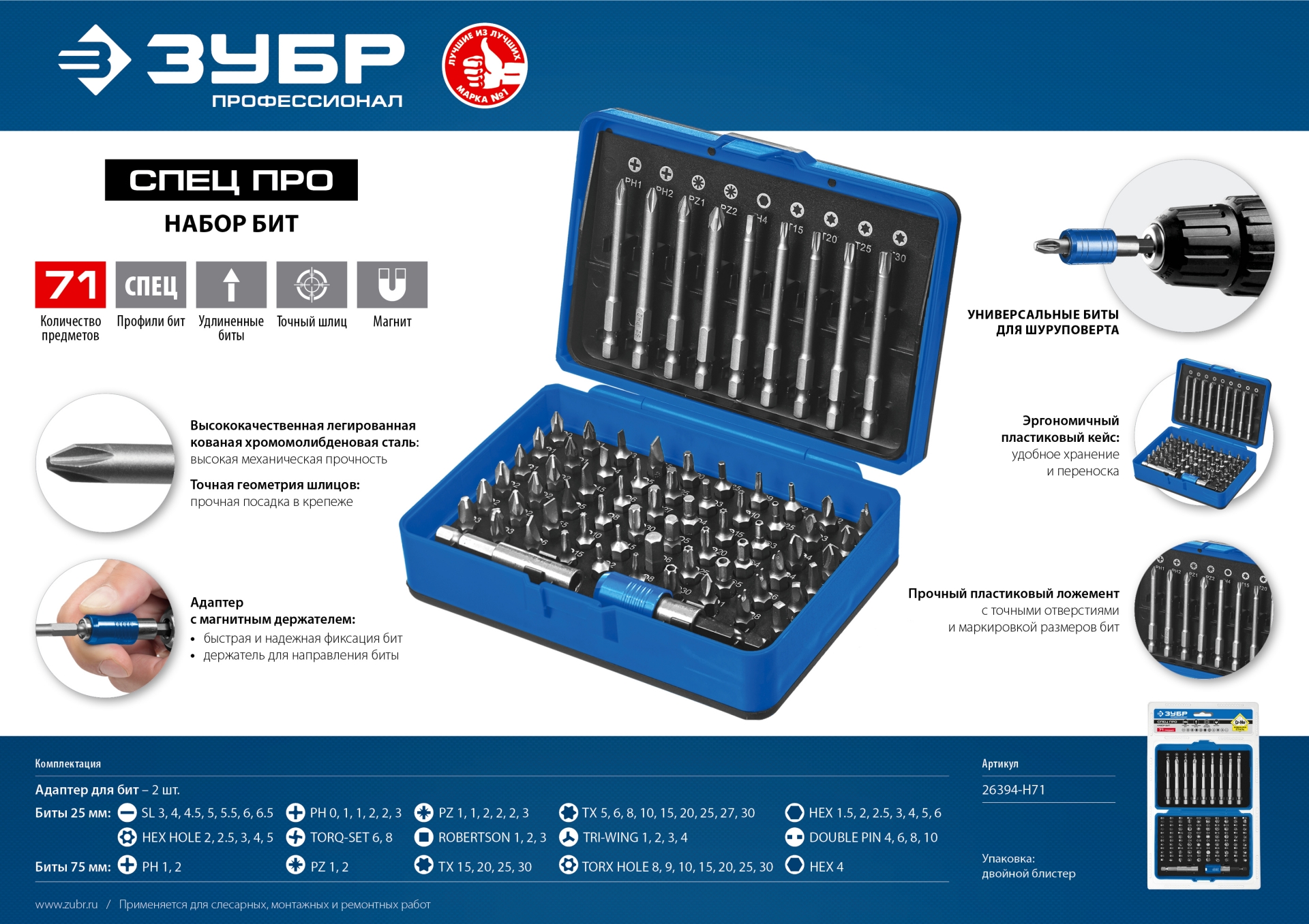 Профессиональные биты ЗУБР для ручного и механизированного инструмента изготовлены из высококачественной стали и имеют точную геометрию шлицов, что обеспечивает длительный срок службы.