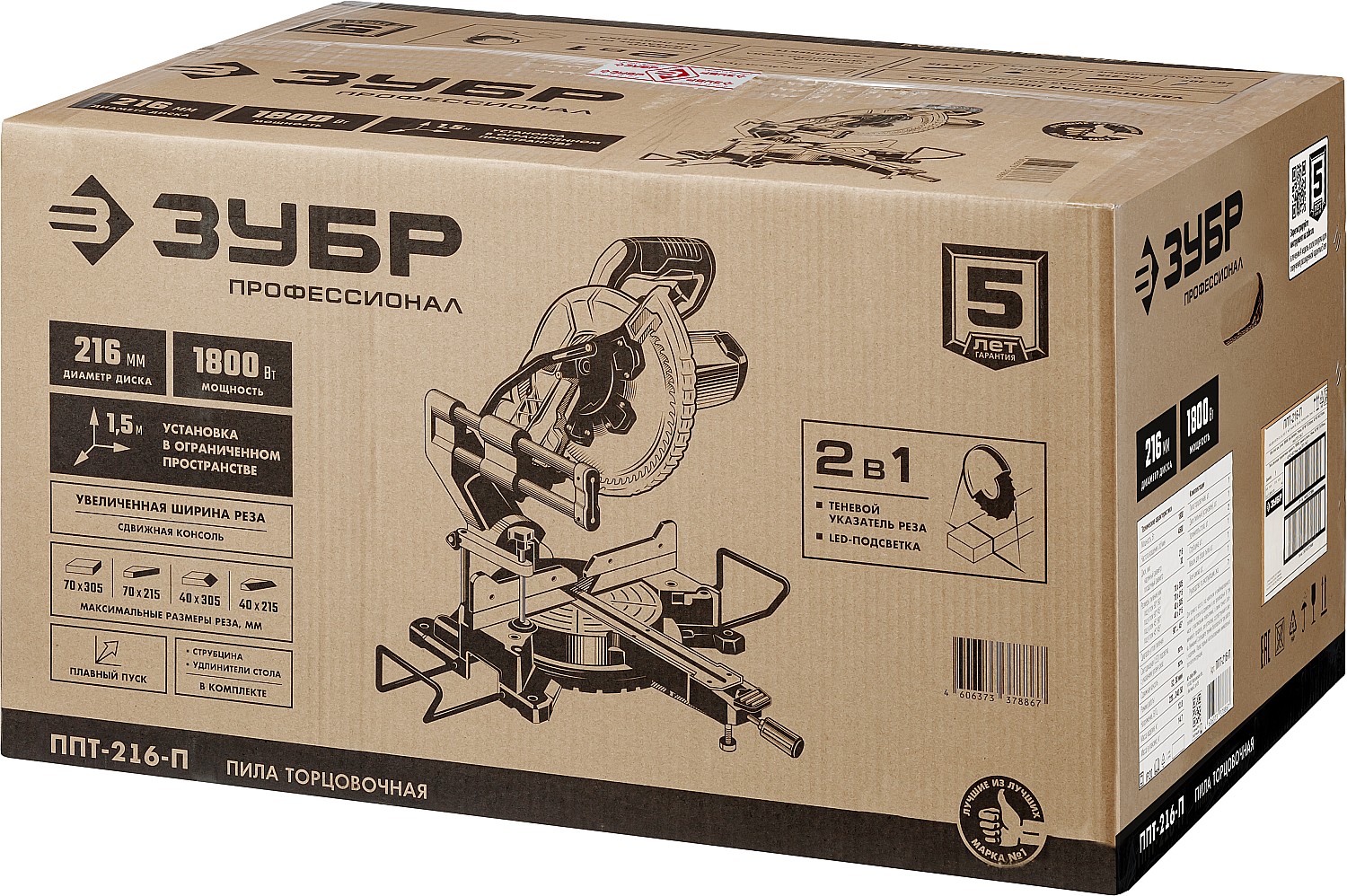 ЗУБР Профессионал ППТ-216-П пила торцовочная с протяжкой, d 216 х 30 мм, 1800 Вт