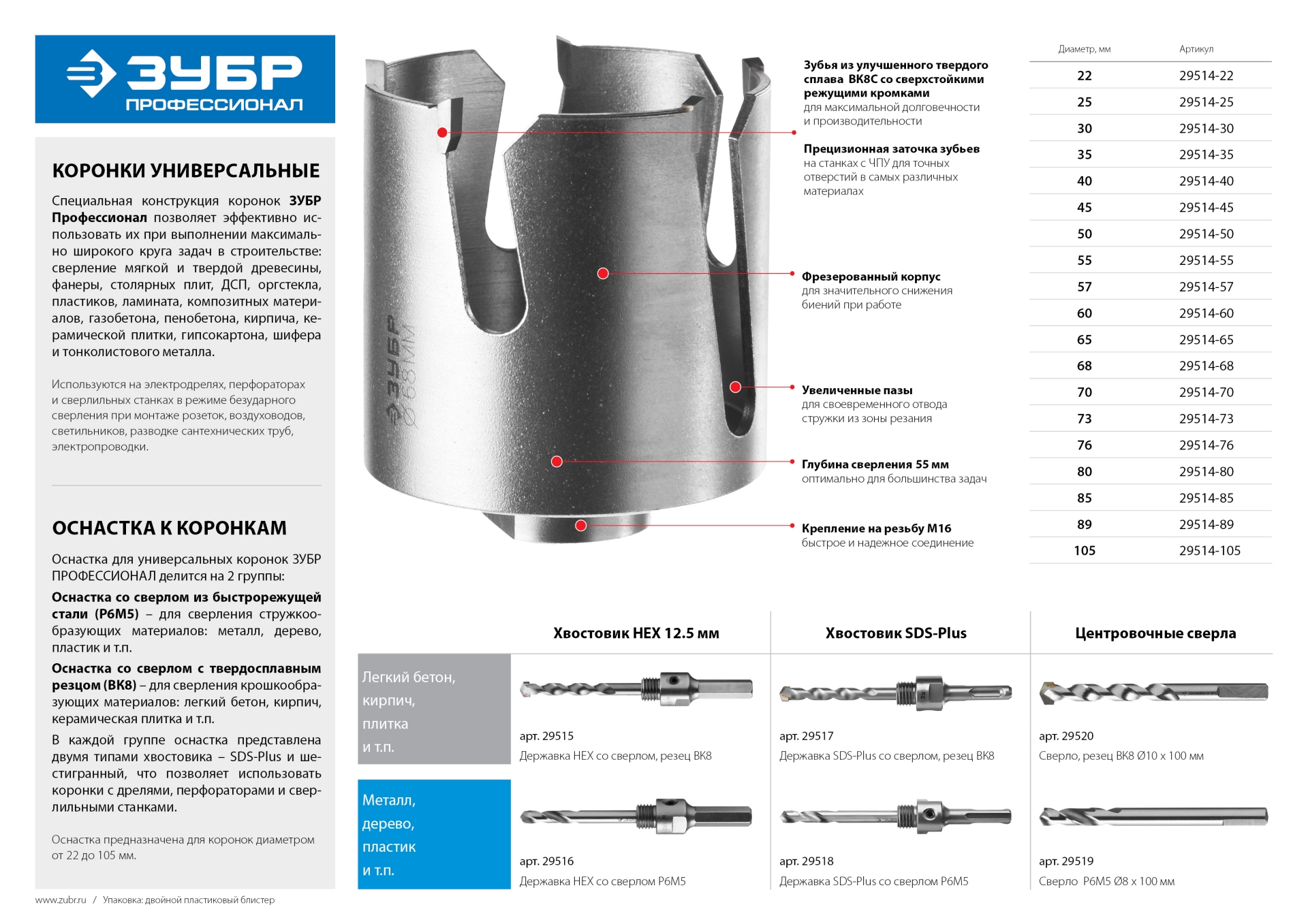 Универсальная коронка ЗУБР ПРОФИ это многофункциональный инструмент, решающий разнообразные задачи сверления при проведении строительных и ремонтных работ.