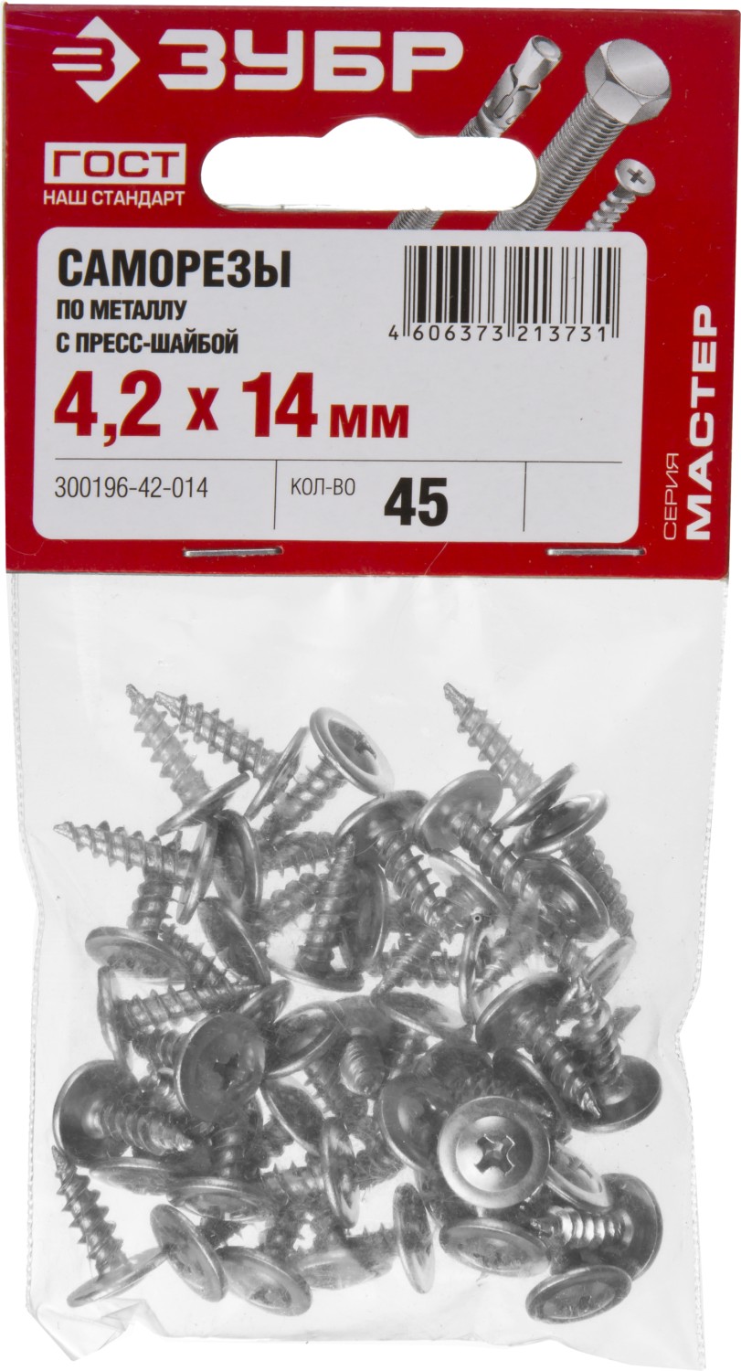 ЗУБР ПШМ, 14 х 4.2 мм, цинк, 45 шт, саморез с пресс-шайбой (300196-42-014)