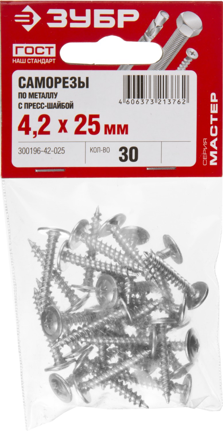 ЗУБР ПШМ, 25 х 4.2 мм, цинк, 30 шт, саморез с пресс-шайбой (300196-42-025)