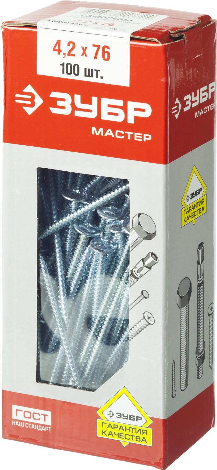 ЗУБР ПШМ, 76 х 4.2 мм, цинк, 100 шт, саморез c пресс-шайбой (4-300191-42-076)