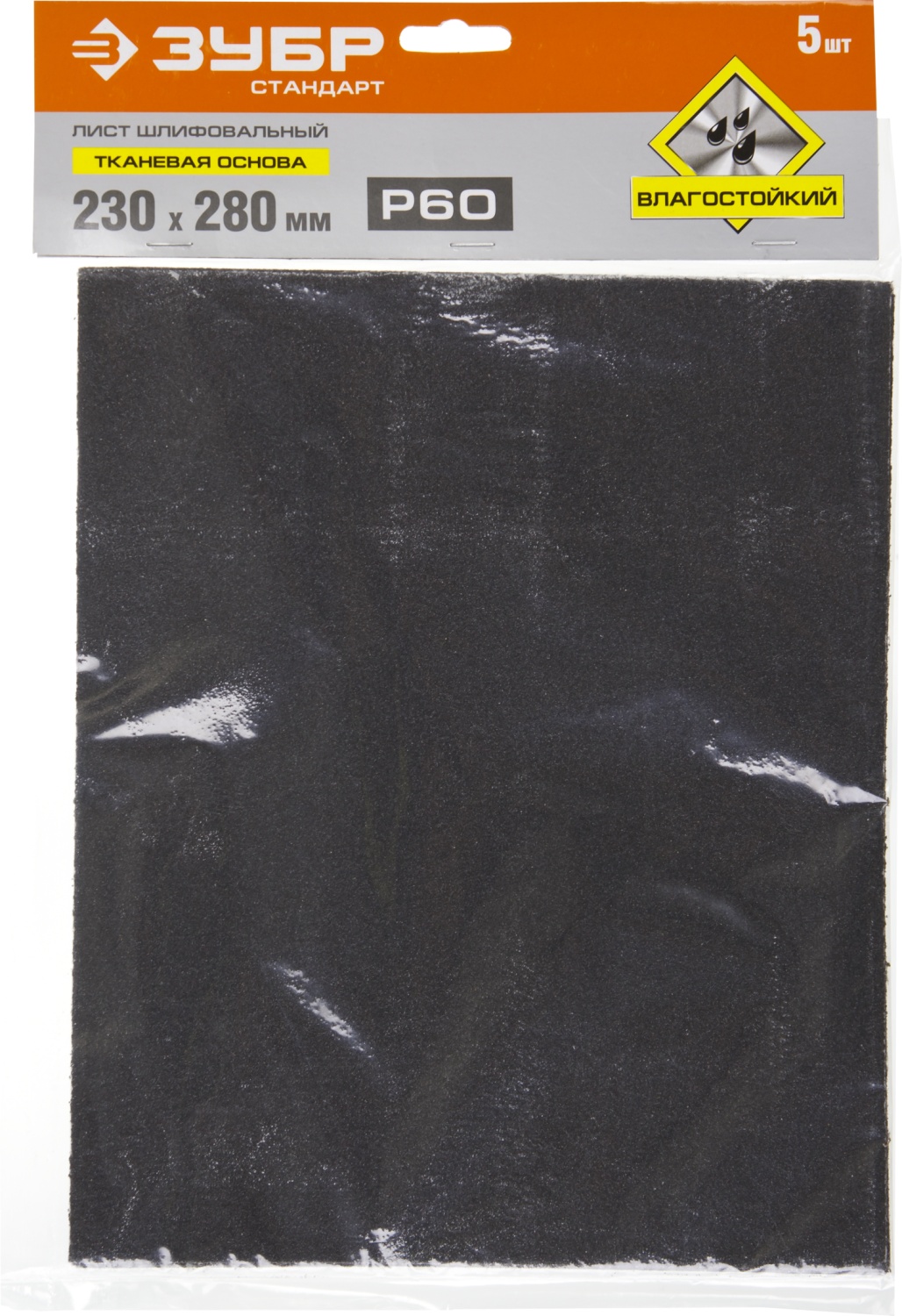ЗУБР Р60, 230 х 280 мм, 5 шт, водостойкий, шлифовальный лист на тканевой основе (35415-060)