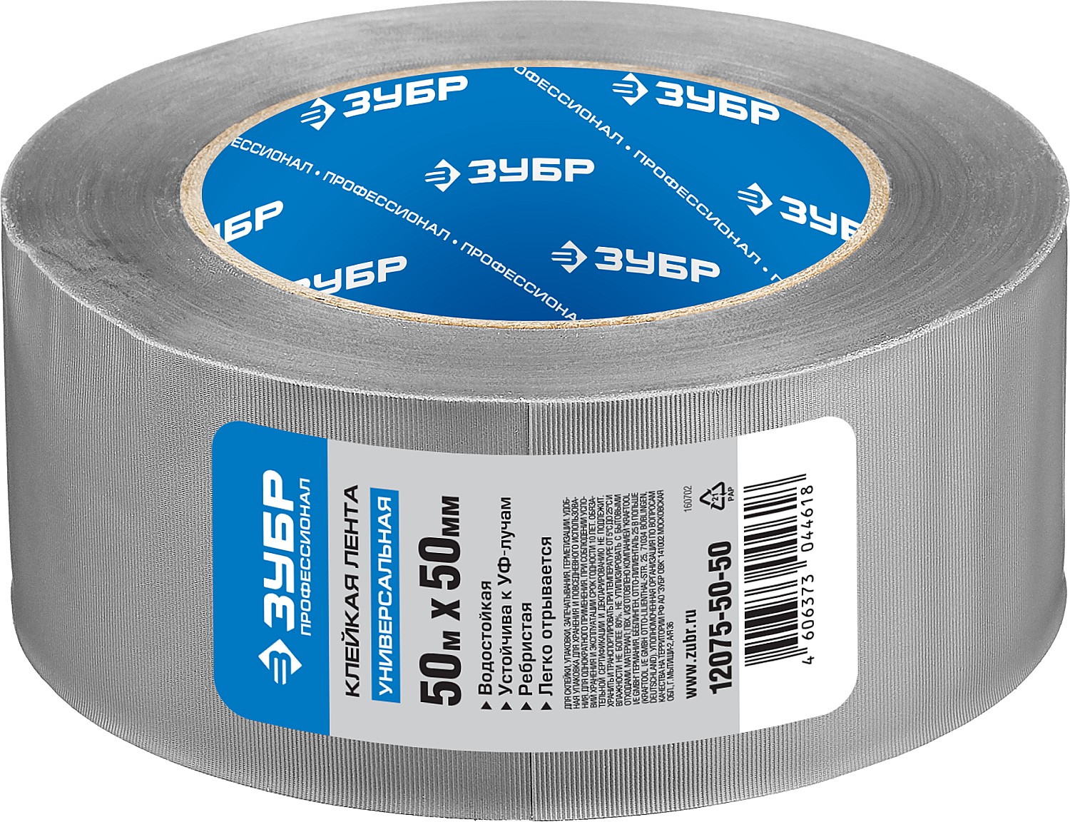 ЗУБР Рефил, 50 мм, 50 м, серая, универсальная, клейкая лента ПВХ, Профессионал (12075-50-50)