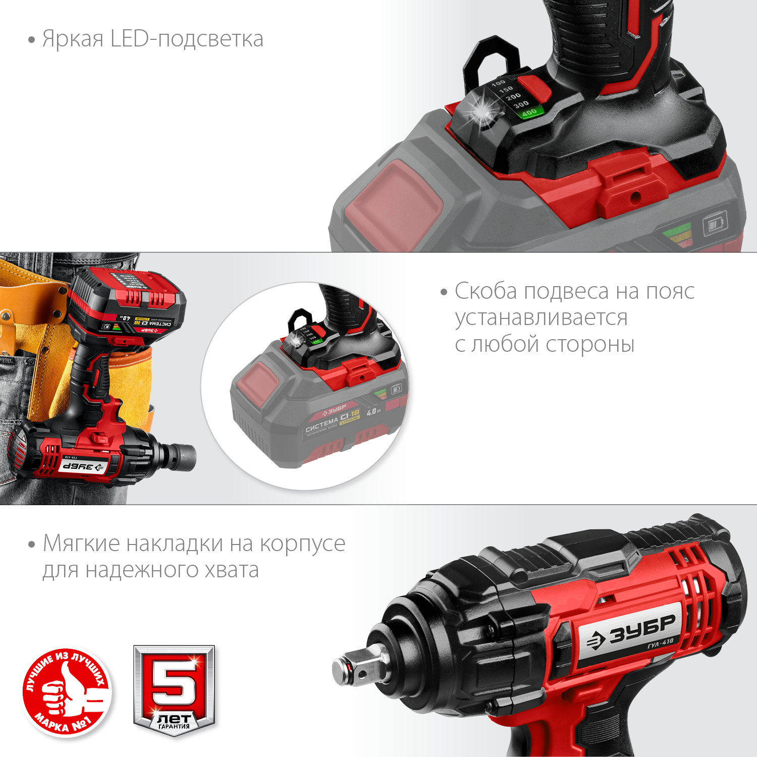 Мощное изделие для заворачивания/отворачивания крепежа (при сборке/разборке металлических конструкций, снятии/установке колес автомобиля и т.д.) благодаря крутящему моменту 400 Нм. Огромный регулируемый крутящий момент позволяет использовать его для самых тяжелых работ в любой области