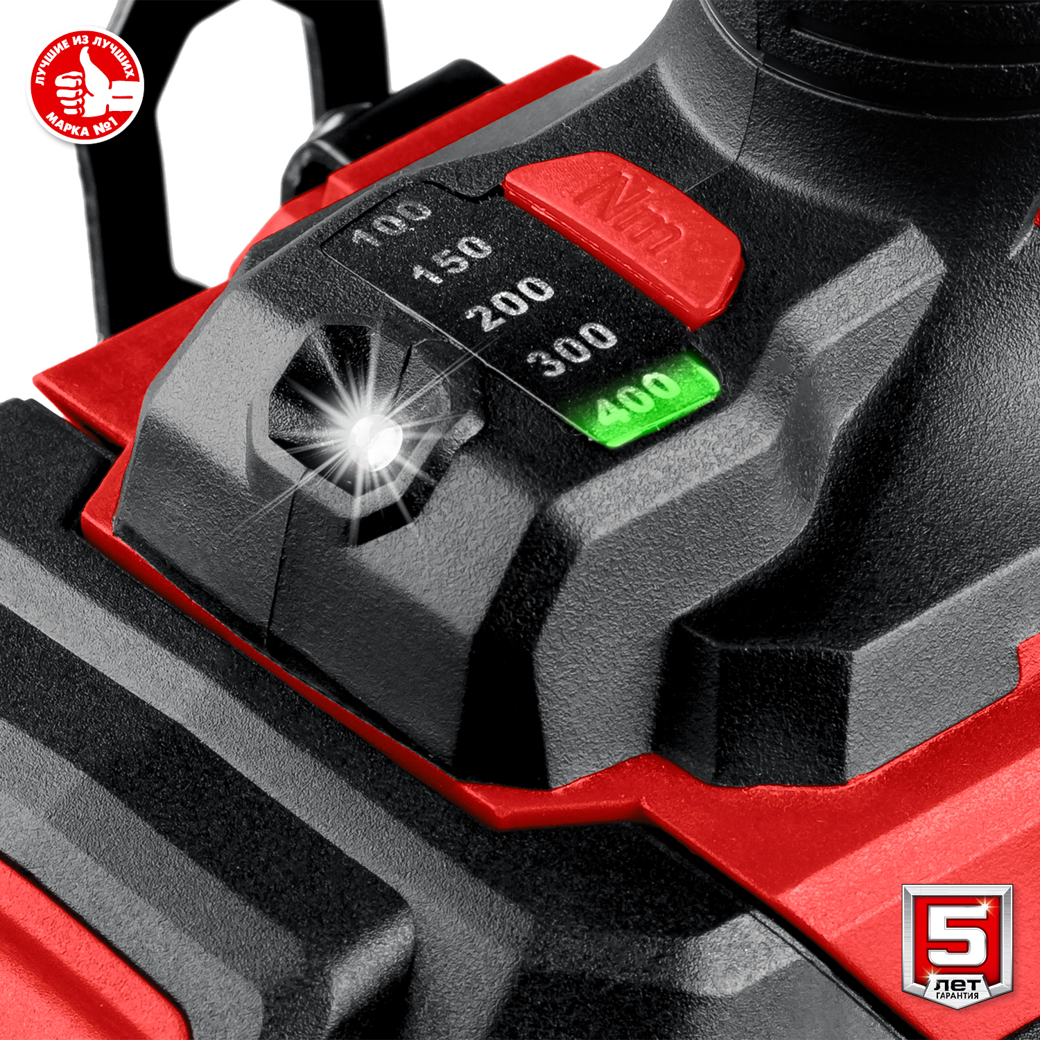 - Пять уровней регулировки предоставляют возможность настроить крутящий момент под предстоящую работу или используемый крепеж