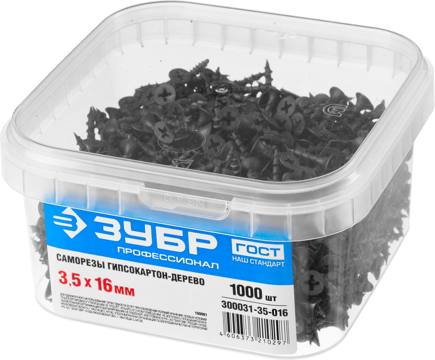 ЗУБР СГД, 16 х 3.5 мм, фосфатированное покрытие, 1000 шт, саморез гипсокартон-дерево, Профессионал (300031-35-016)
