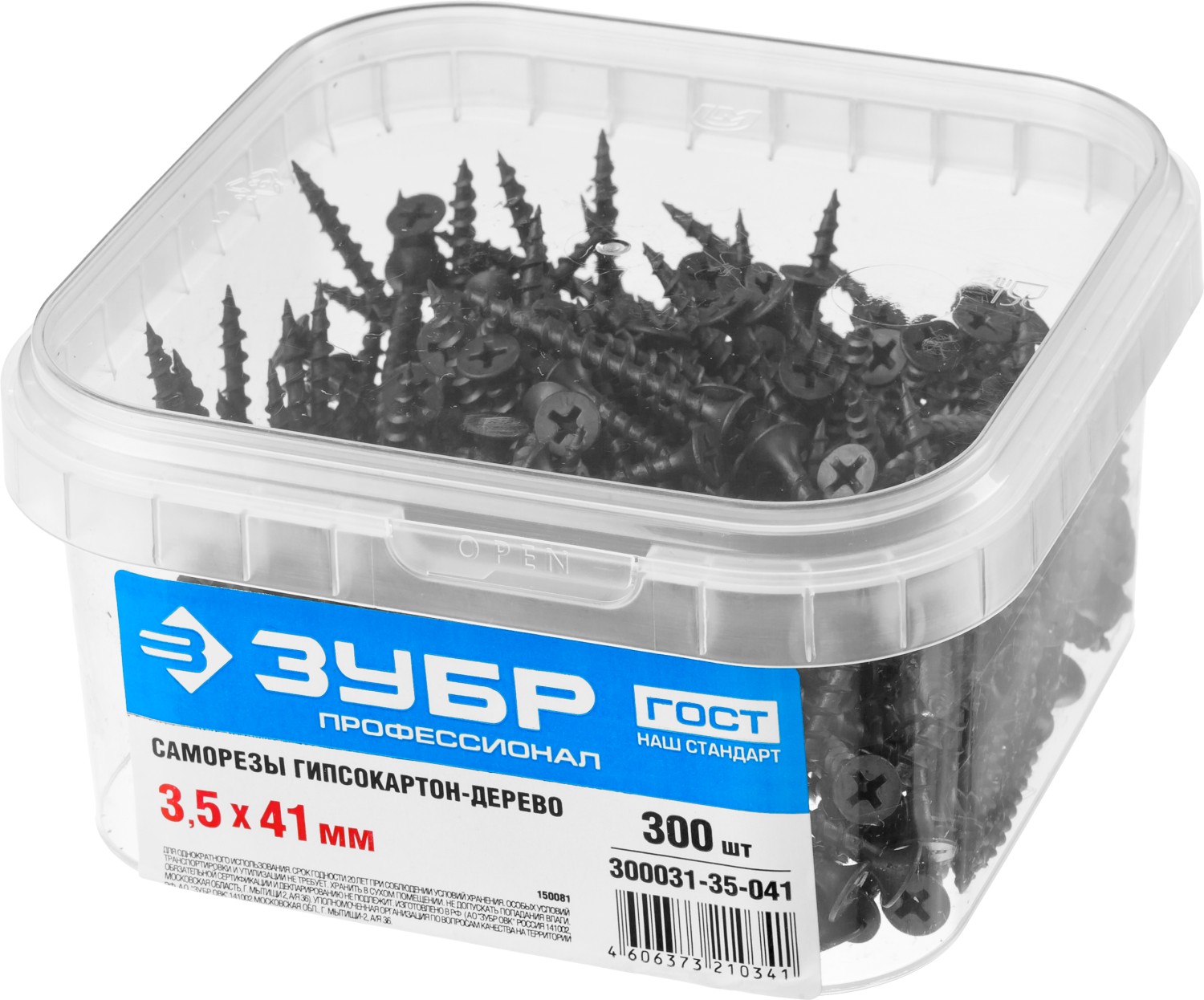 ЗУБР СГД, 41 х 3.5 мм, фосфатированное покрытие, 300 шт, саморез гипсокартон-дерево, Профессионал (300031-35-041)