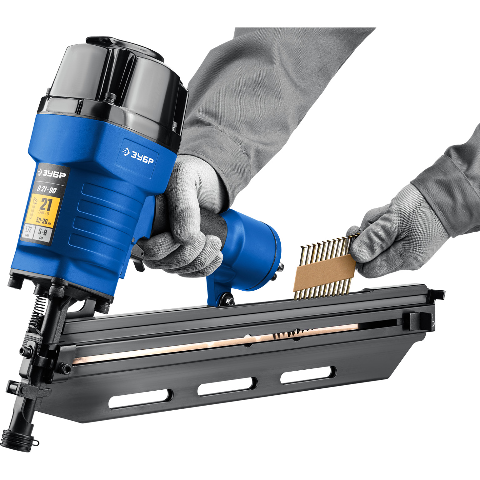 Для сборки деревянных конструкций, крепления тонколистового металла до 0.9 мм. В каркасном домостроении используются для сборки каркаса дома и установки черновых полов. Монтаж производится при помощи гвоздезабивного пистолета (нейлера) ЗУБР SN21-90 (арт. 31931), ЗУБР SN21-90A (арт. 31923) или аналогичного, рассчитанного на работу с гвоздями в кассетах с углом наклона 21 град. Во избежание повреждения кассеты на бумажной основе при установке в магазин нейлера не допускайте сильных ударов толкателя по кассете с гвоздями.