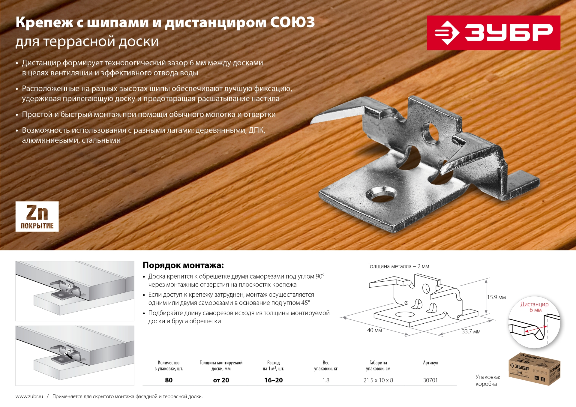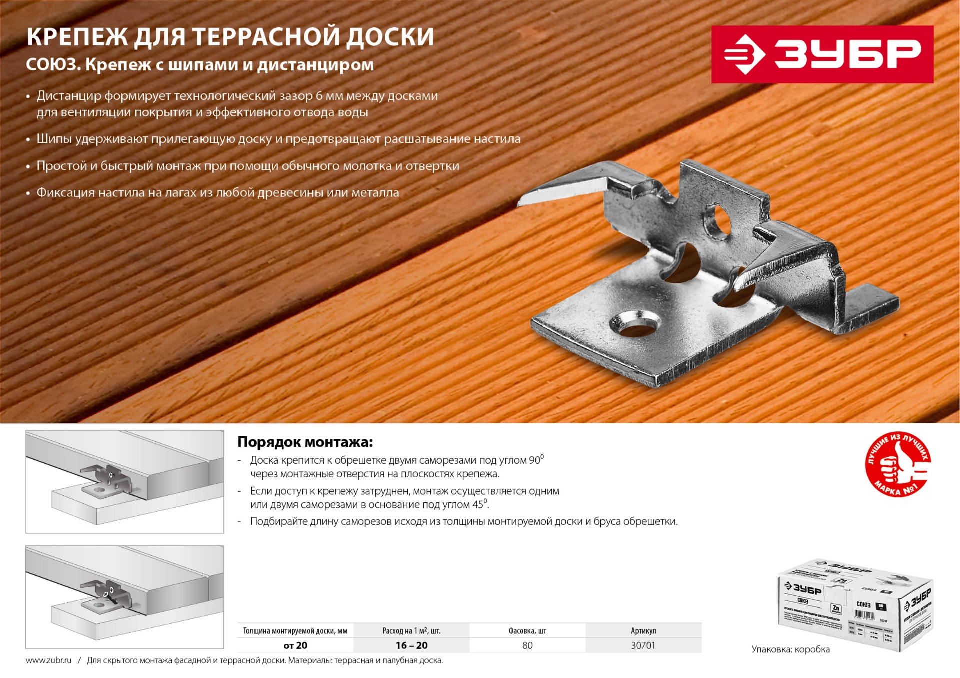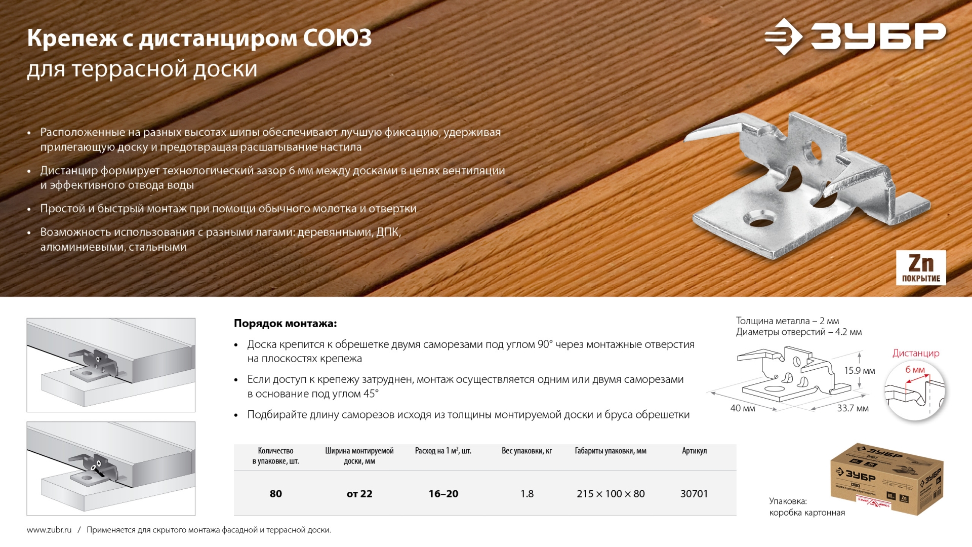 - Основание крепежа обеспечивает дополнительную вентиляцию между лагой и доской