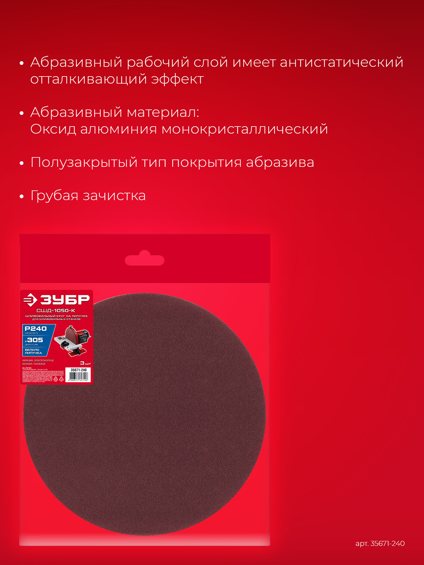 Главными преимуществами специализированных шлифовальных кругов ЗУБР ″СШД-1050-К″ является их увеличенный рабочий ресурс, повышенная стойкость тканевой основы, а также высокая производительность при шлифовке древесины, металла, пластика и других материалов.