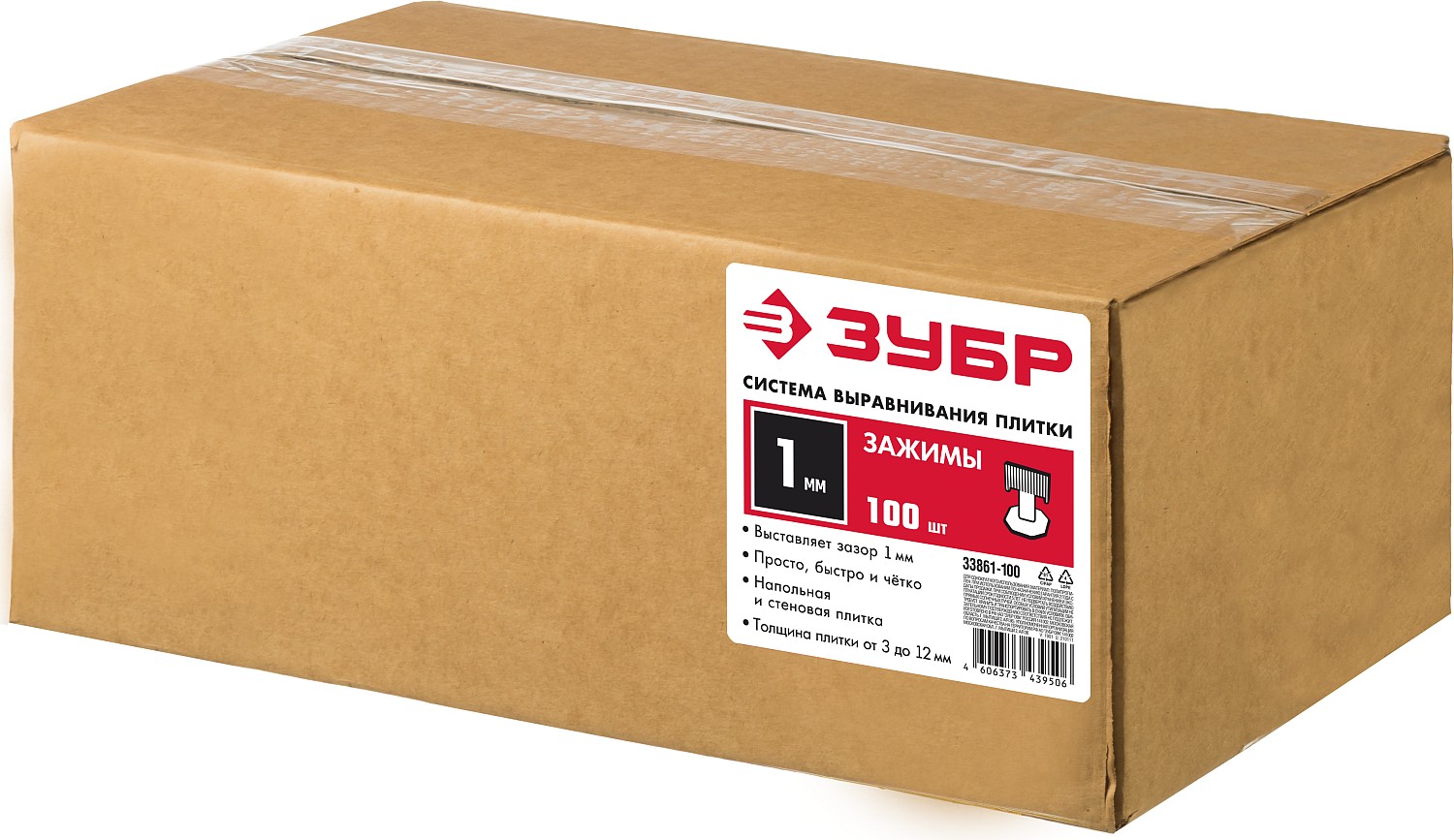 Изготовлен из высокопрочного пластика, что предотвращает растягивание во время высыхания клеевого состава и обеспечивает прочную фиксацию плитки. Имеет «технический шов» у основания, что обеспечивает точный отрыв у самого основания зажима. Место сцепления с клином сделано острым конусом, что гарантирует прочную фиксацию плитки.